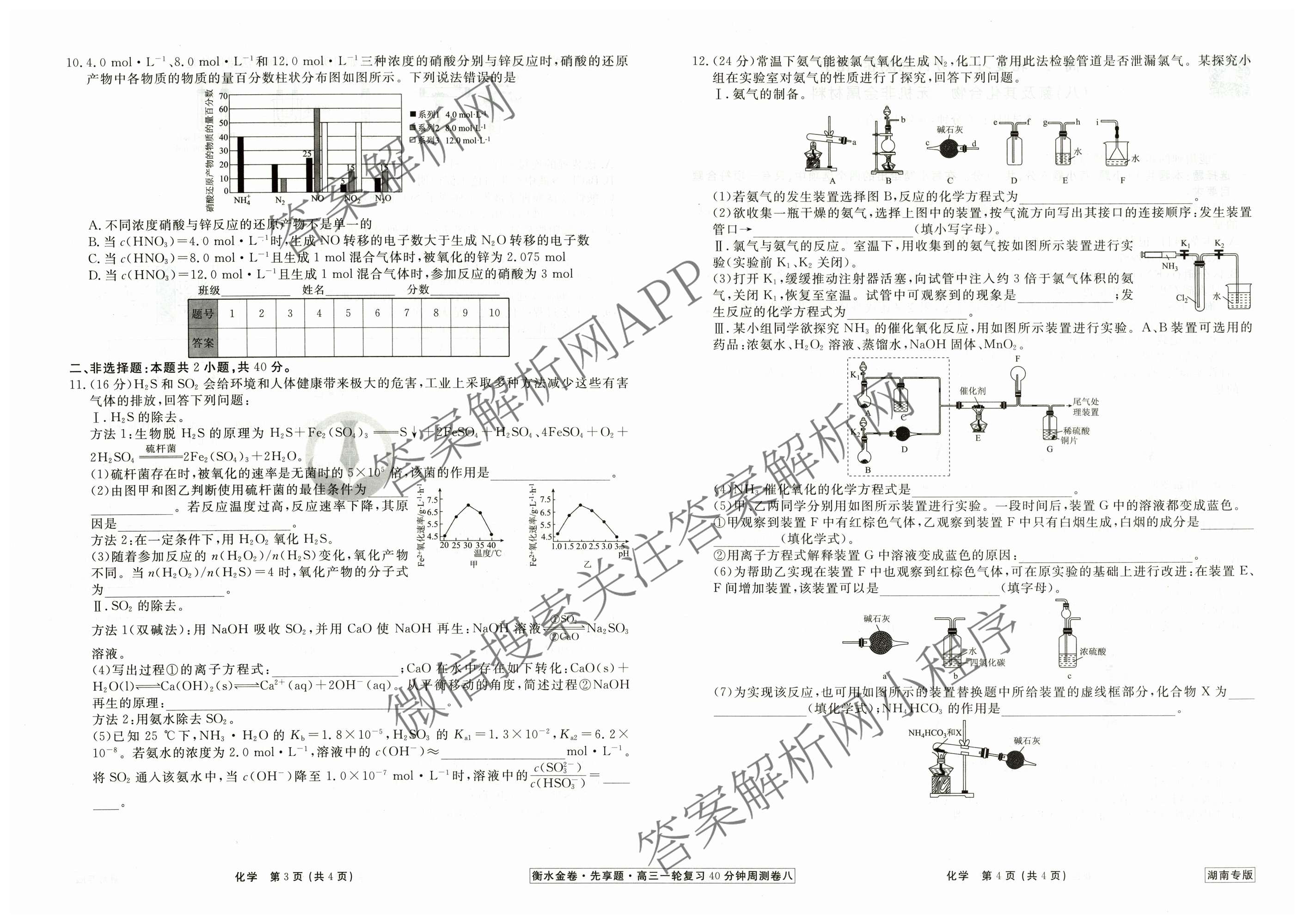 - [高三]2024~2025衡水金卷先享题一轮复习40分钟周测卷化学(湖南专版)(八)8答案