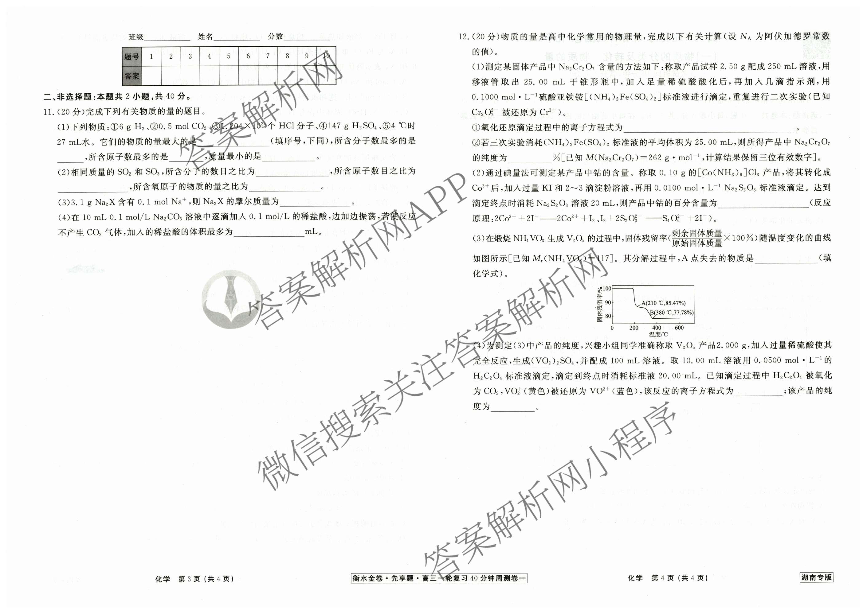 2024-2025衡水金卷先享题·高三一轮复习40分钟周测卷·化学(湖南专版)(一)1试题,目前衡水金卷先享题答案网已经汇总了2024-2025衡水金卷先享题·高三一轮复习40分钟周测卷·化学(湖南专版)(一)1试题的各科答案和试卷,获取更多衡水金卷先享题答案解析,请在关注本站。