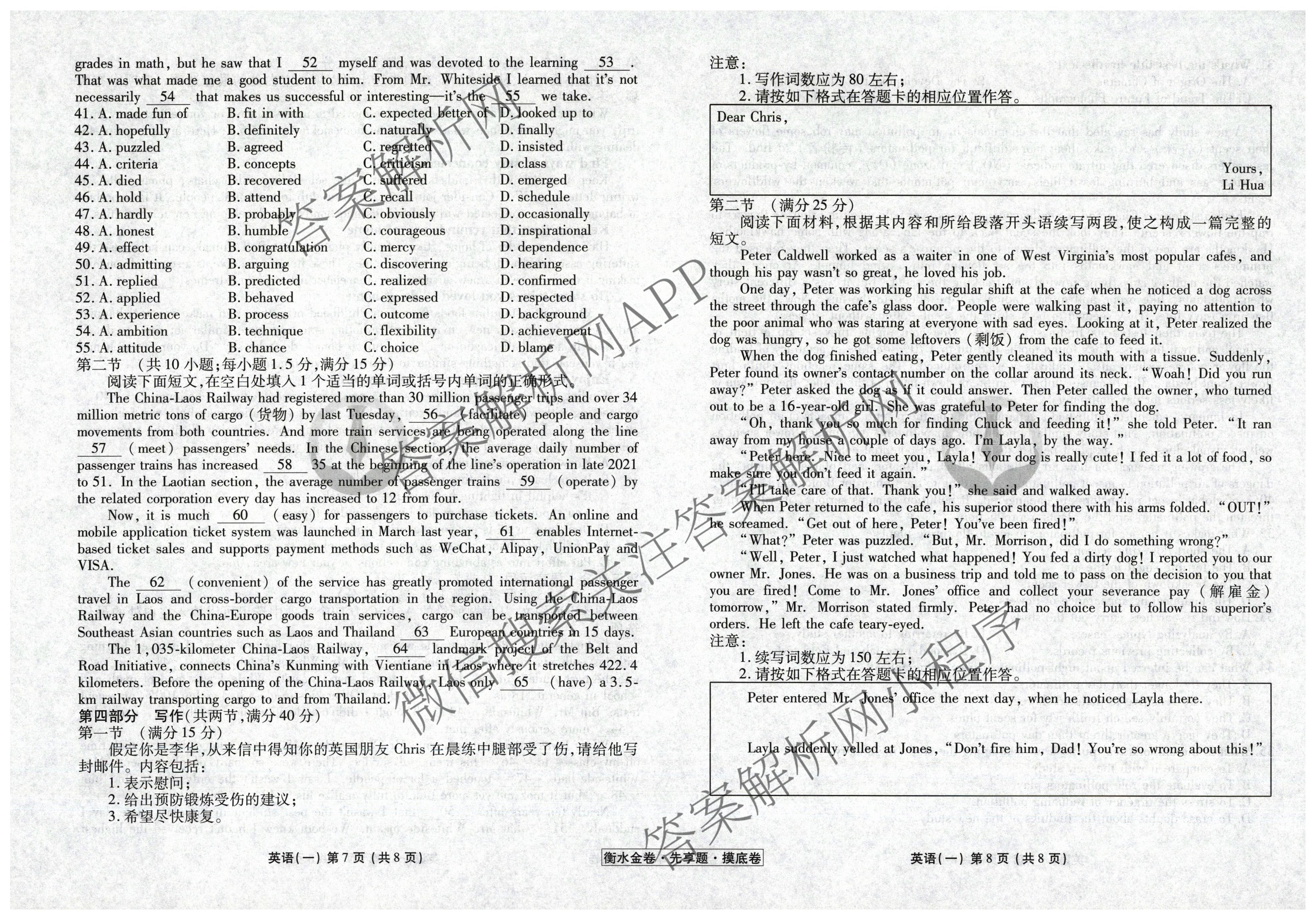- [高三][衡水金卷先享题]摸底卷2024-2025学年度一轮复习摸底测试卷(一)1英语(不含听力)答案