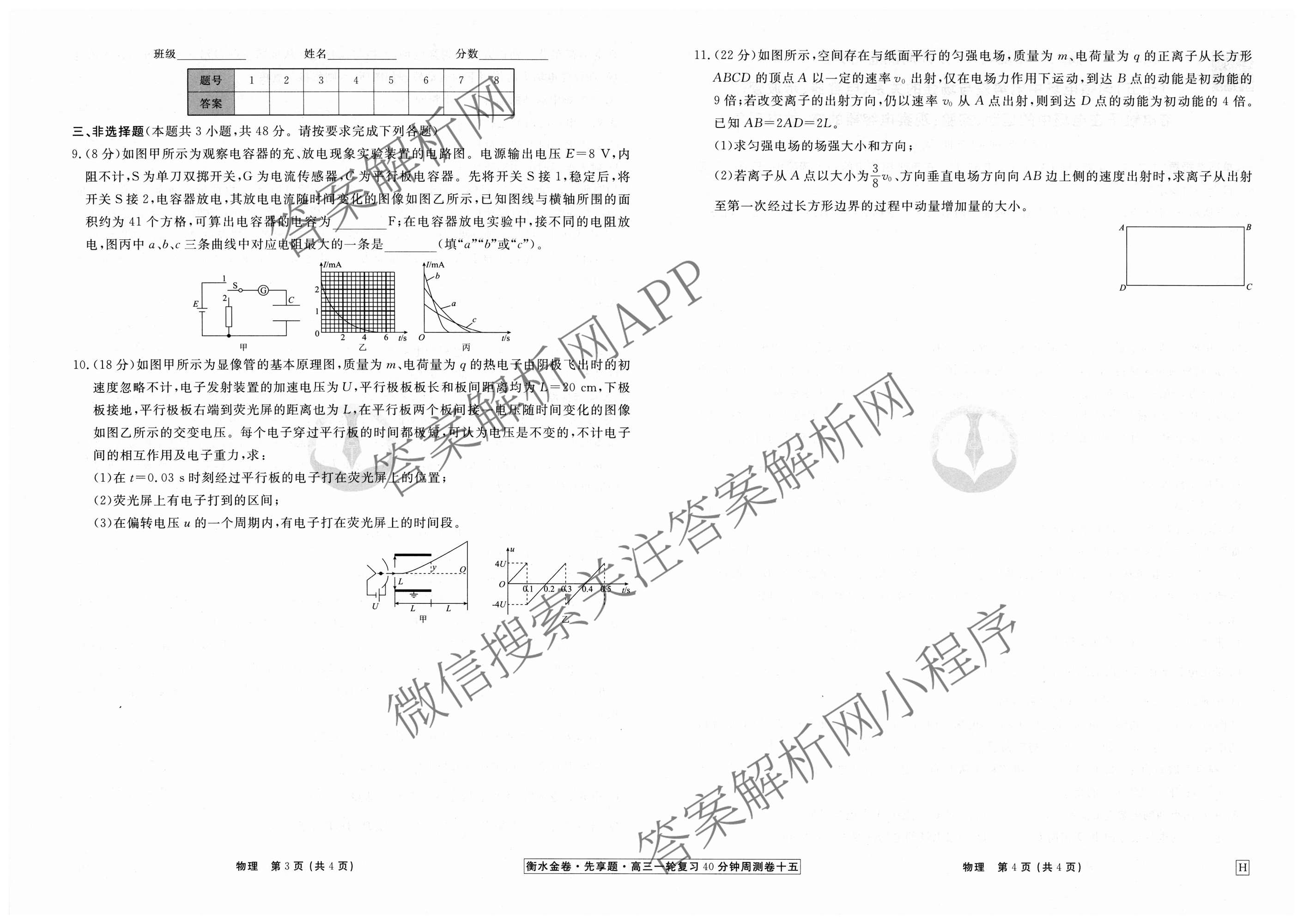 - [高三]2024~2025[衡水金卷先享题]·一轮复习40分钟周测卷·物理(广东专版)(十五)15答案