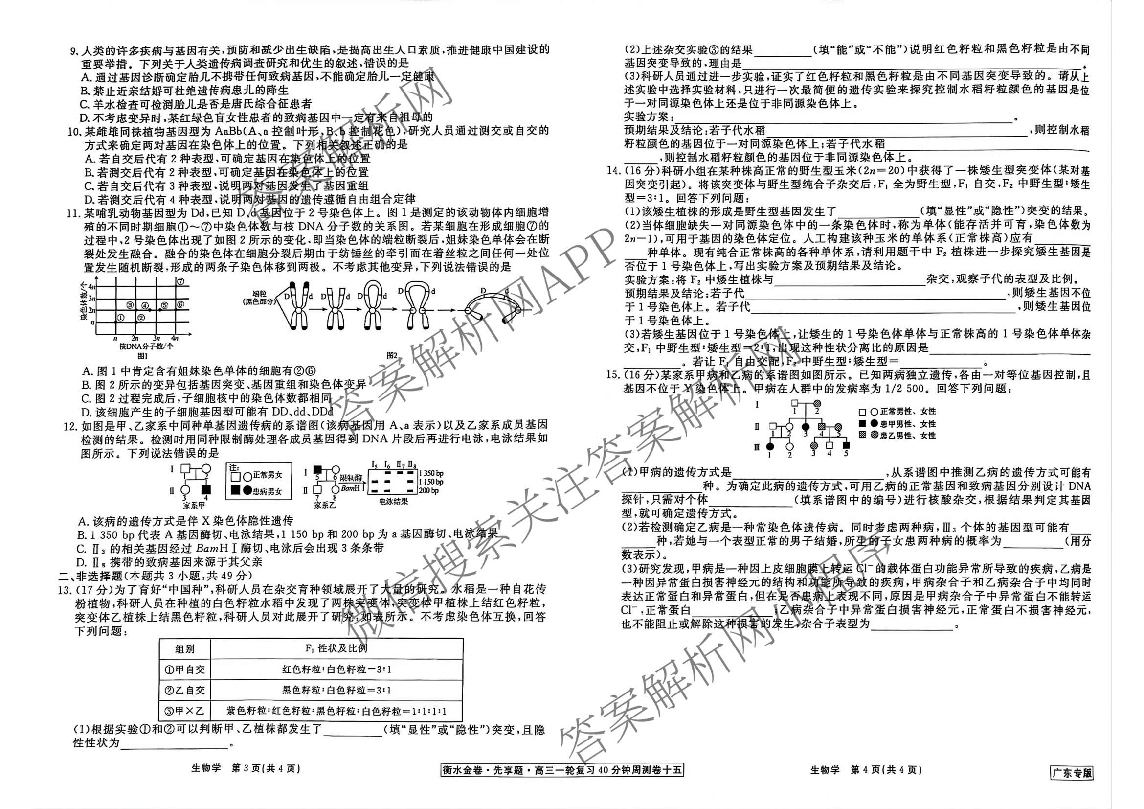 - [高三]2024-2025(衡水金卷先享题)一轮复习40分钟周测卷生物(广东专版)(十五)15答案
