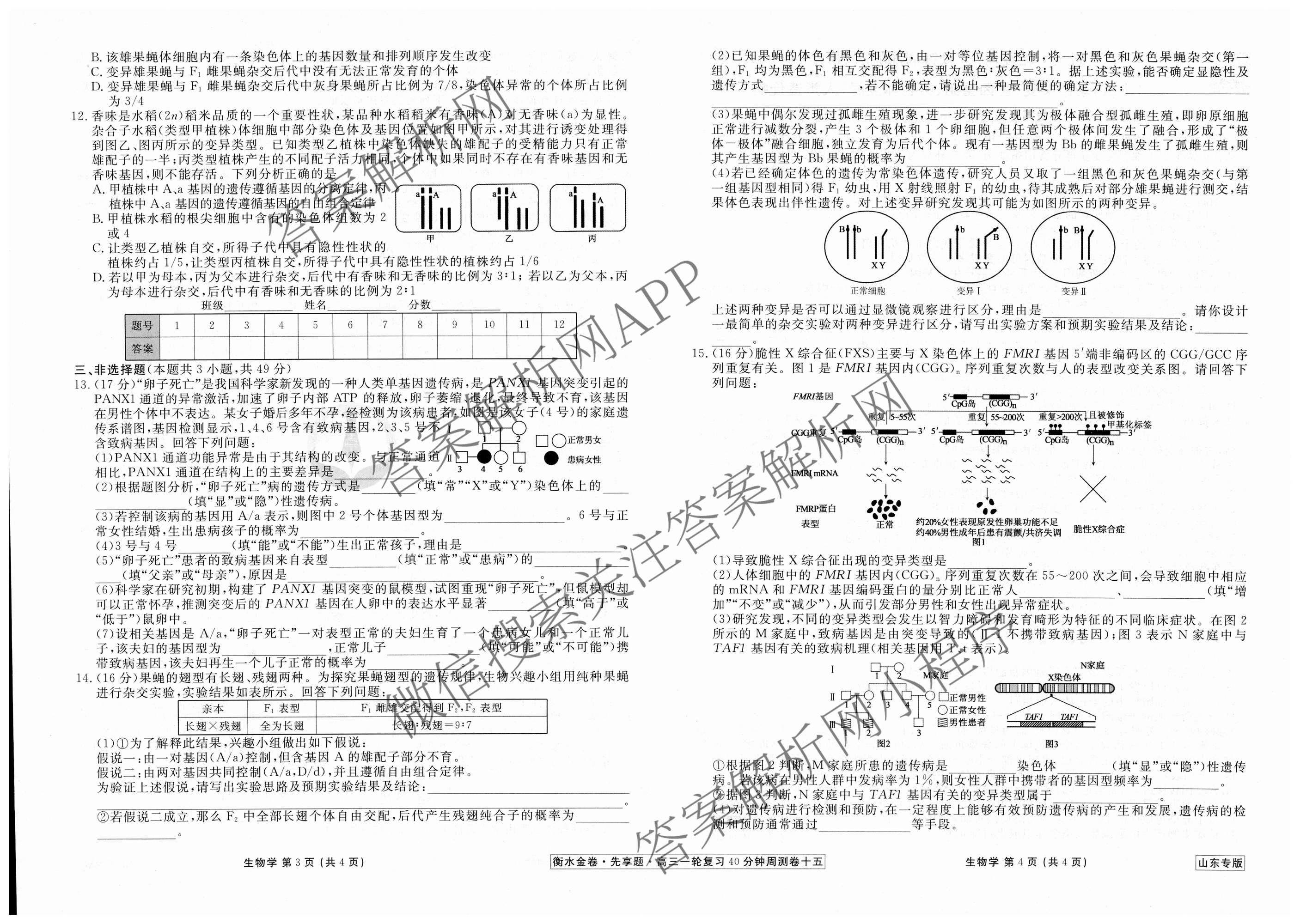 2024-2025衡水金卷先享题·高三一轮复习40分钟周测卷·生物(山东专版)(十五)15试题,目前衡水金卷先享题答案网已经汇总了2024-2025衡水金卷先享题·高三一轮复习40分钟周测卷·生物(山东专版)(十五)15试题的各科答案和试卷,获取更多衡水金卷先享题答案解析,请在关注本站。