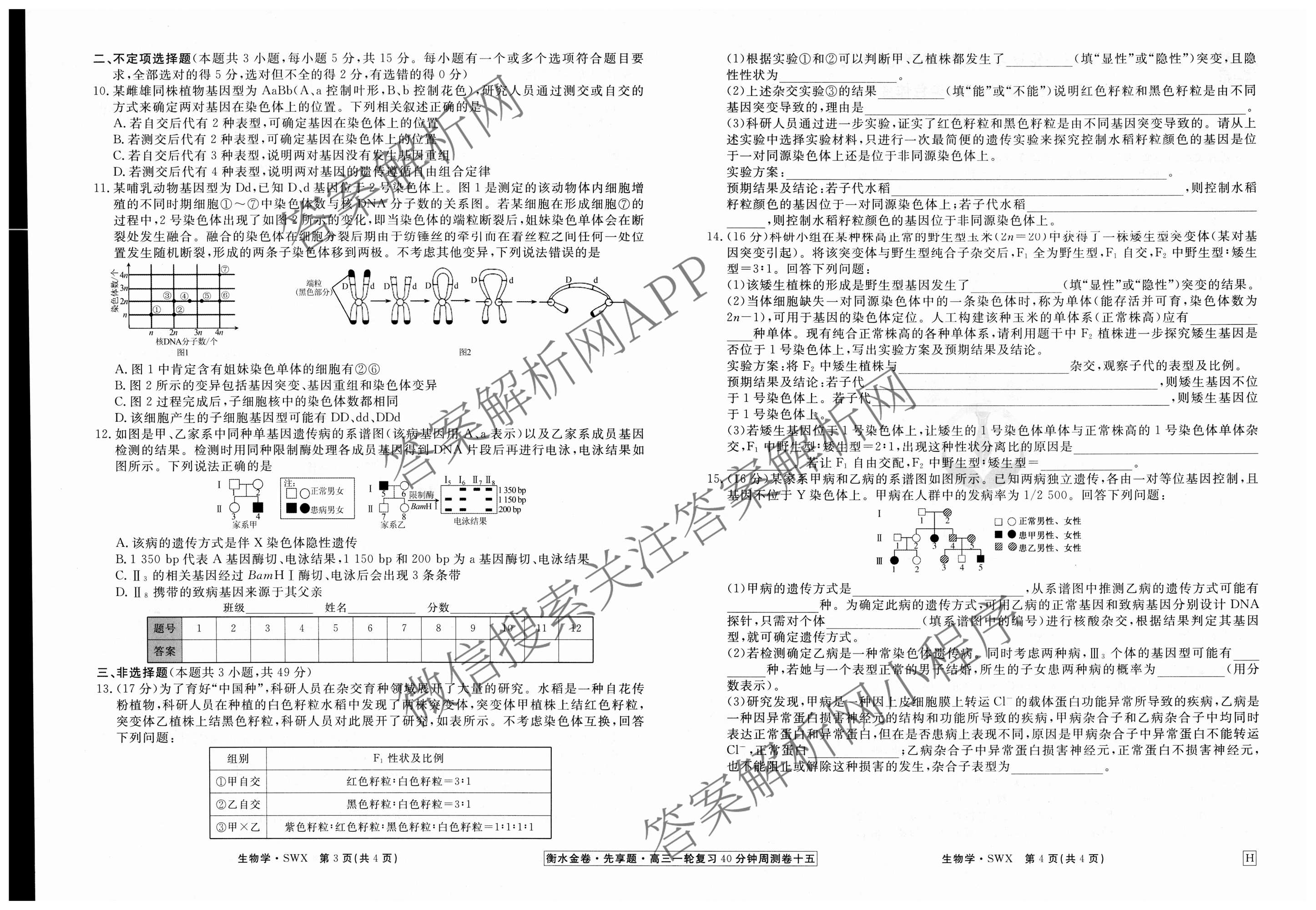 - 2024~2025(衡水金卷先享题)(高三)一轮复习40分钟周测卷生物(SWX (H))(十五)15答案