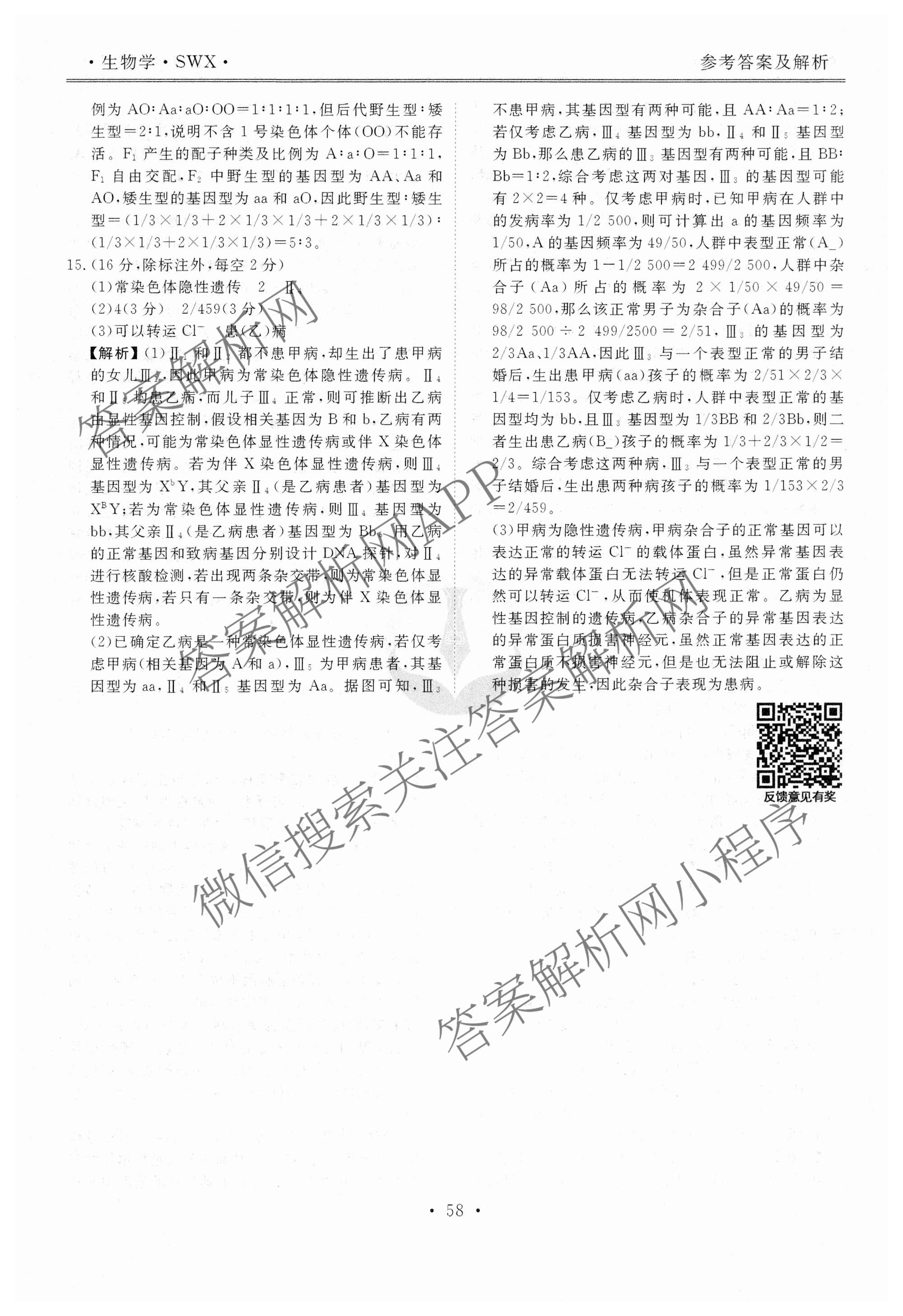 2024-2025衡水金卷先享题·高三一轮复习40分钟周测卷·生物(SWX (H))(十五)15答案,目前衡水金卷先享题答案网已经汇总了2024-2025衡水金卷先享题·高三一轮复习40分钟周测卷·生物(SWX (H))(十五)15答案的各科答案和试卷,获取更多衡水金卷先享题答案解析,请在关注本站。