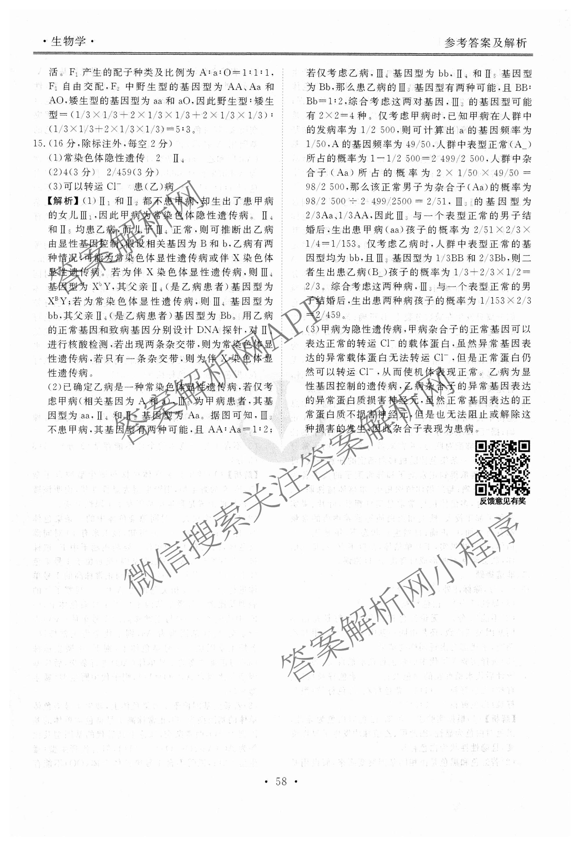 - 2024~2025[衡水金卷先享题][高三]一轮复习40分钟周测卷生物(H)(十五)15答案