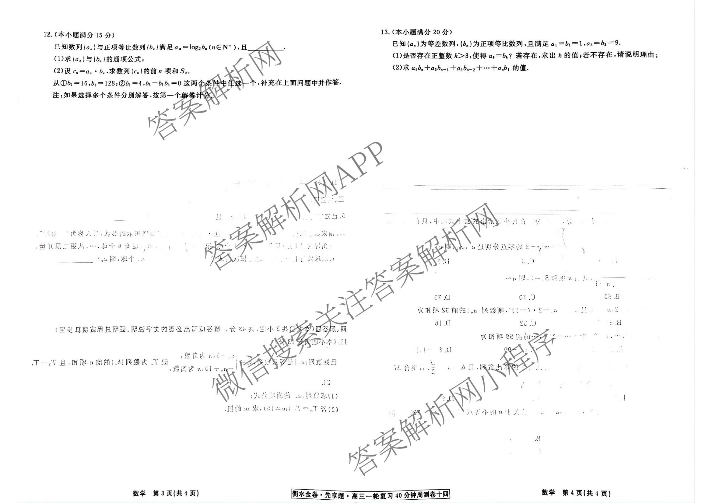 - 2024-2025(衡水金卷先享题)[高三]一轮复习40分钟周测卷数学(A)(十四)14答案