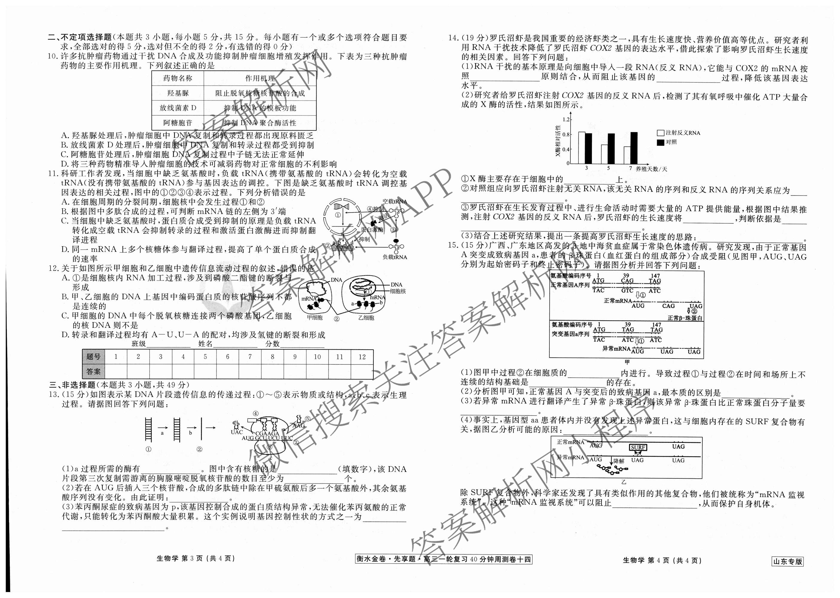 2024-2025衡水金卷先享题·高三一轮复习40分钟周测卷·生物(山东专版)(十四)14试题,目前衡水金卷先享题答案网已经汇总了2024-2025衡水金卷先享题·高三一轮复习40分钟周测卷·生物(山东专版)(十四)14试题的各科答案和试卷,获取更多衡水金卷先享题答案解析,请在关注本站。