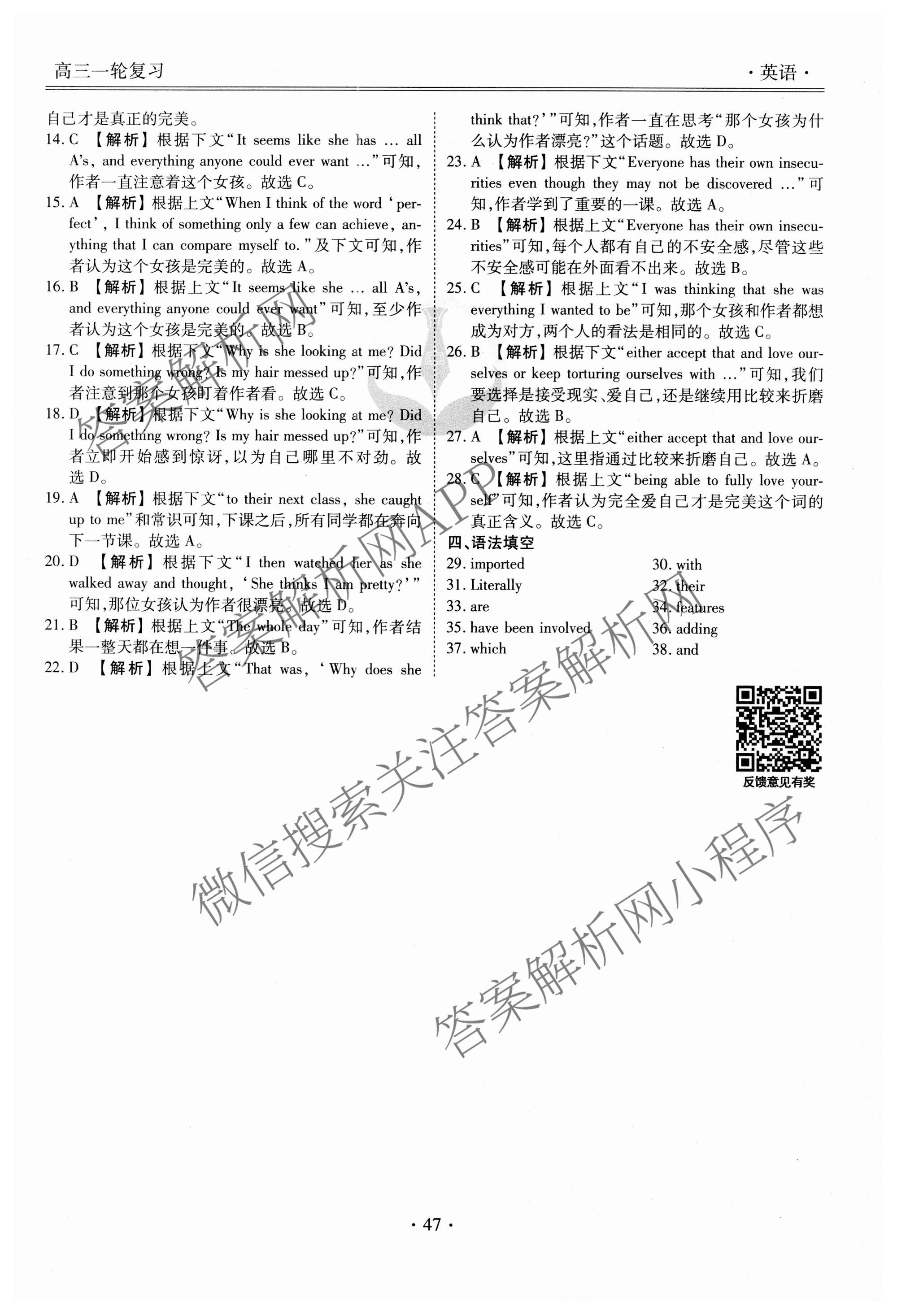 (高三)2024~2025(衡水金卷先享题)·一轮复习40分钟周测卷·英语(十四)14答案