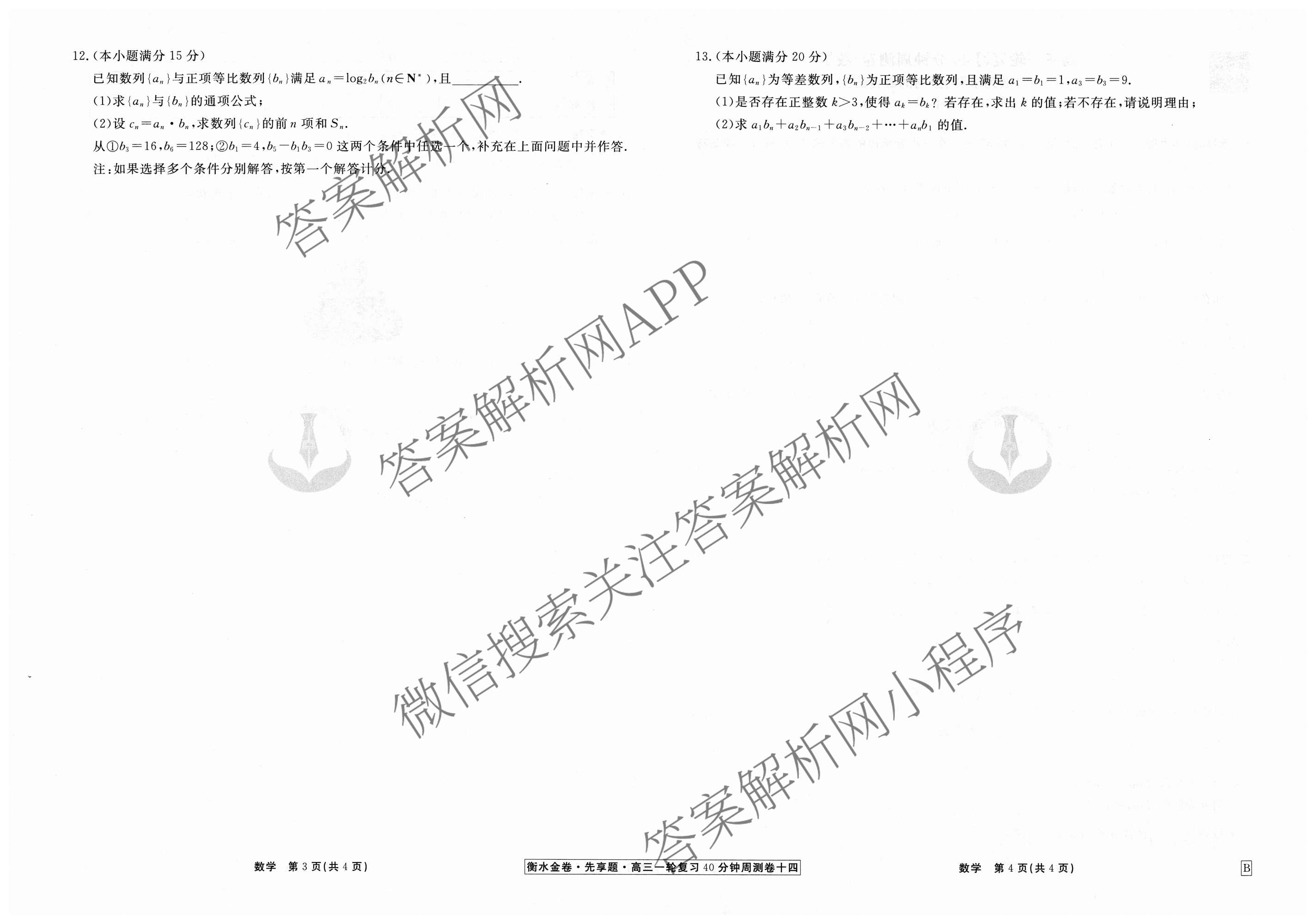 - 2024~2025(衡水金卷先享题)·(高三)一轮复习40分钟周测卷·数学(B)(十四)14答案
