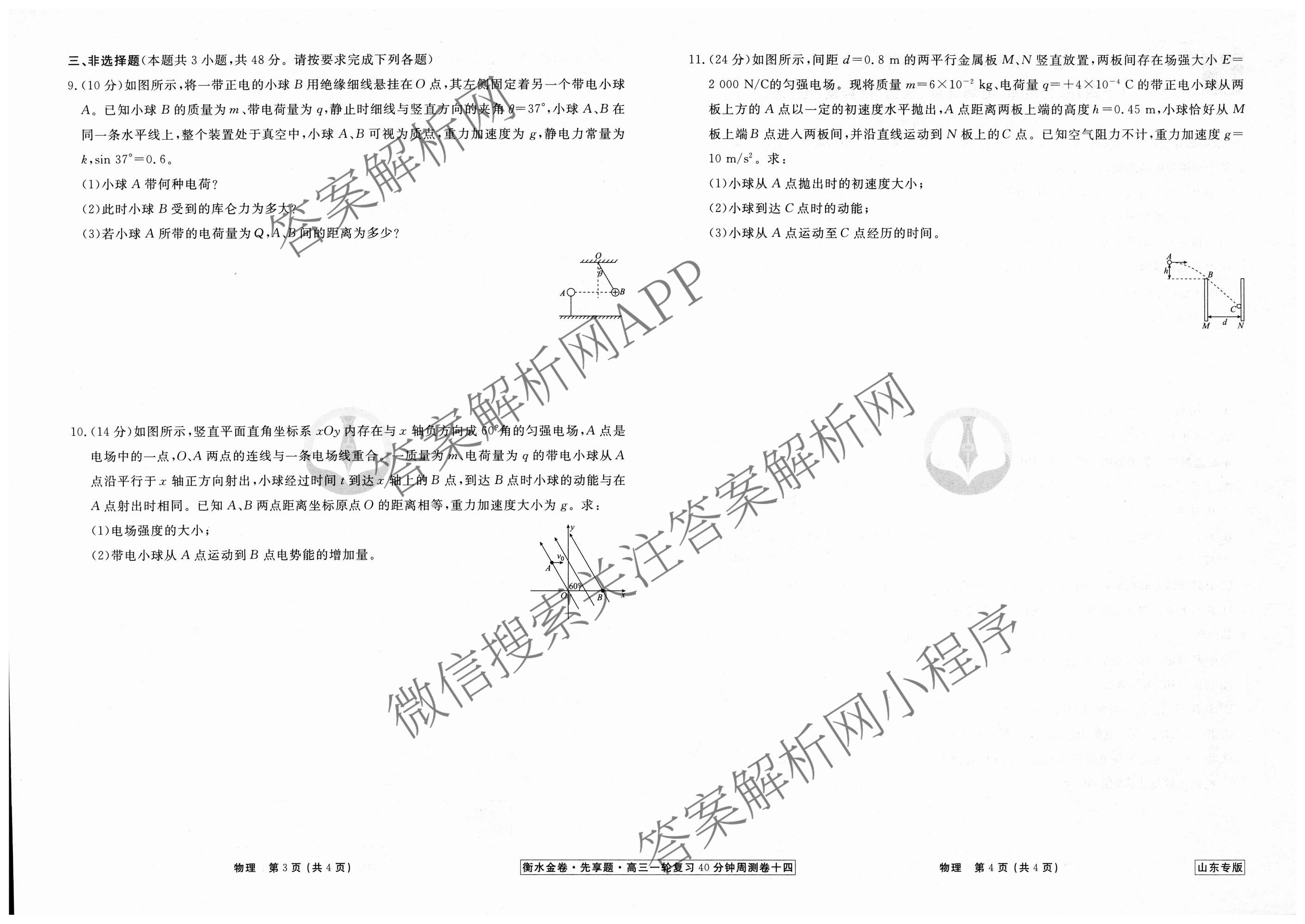 - [高三]2024~2025(衡水金卷先享题)·一轮复习40分钟周测卷·物理(山东专版)(十四)14答案