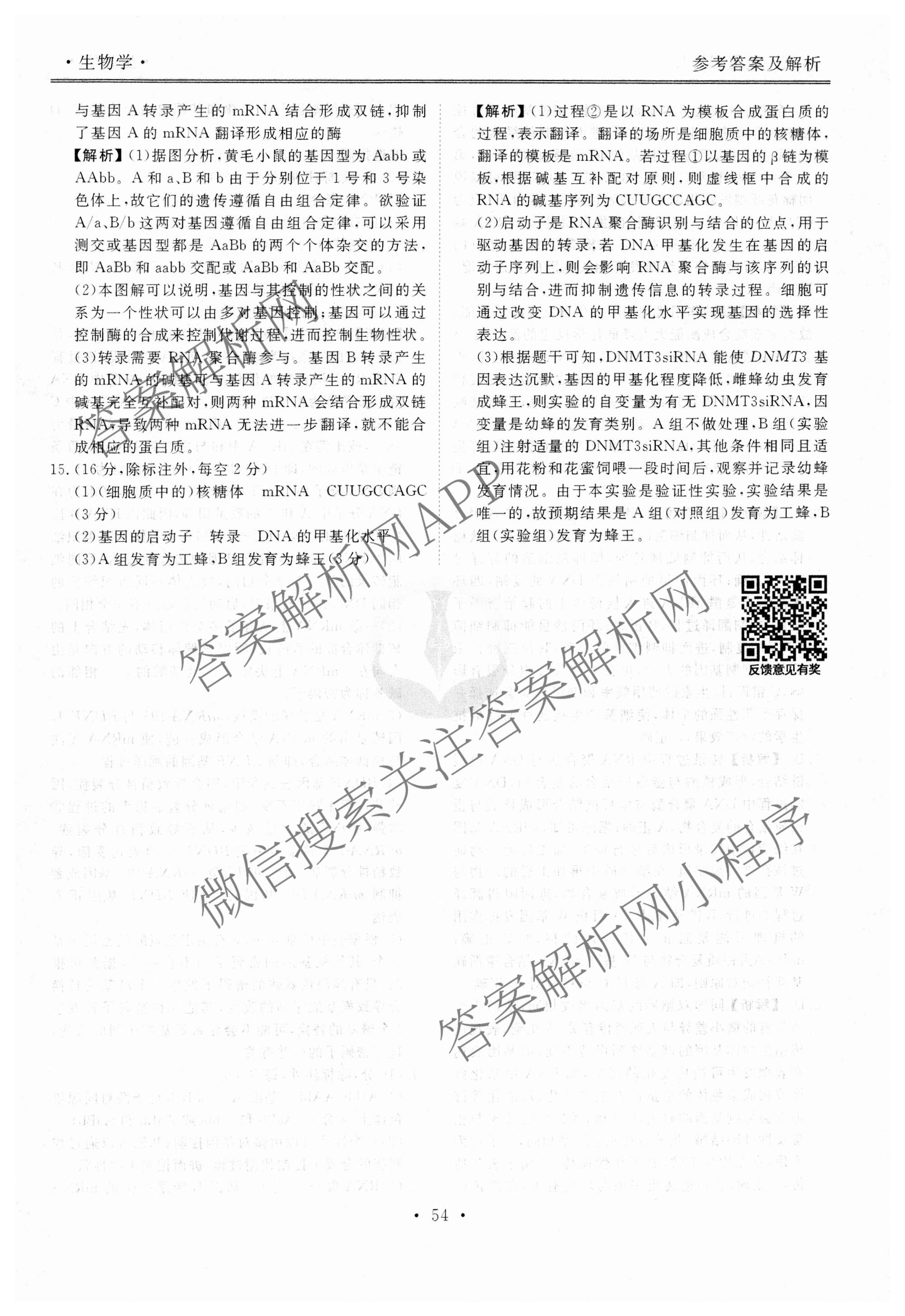 - [高三]2024~2025(衡水金卷先享题)·一轮复习40分钟周测卷·生物(湖南专版)(十四)14答案