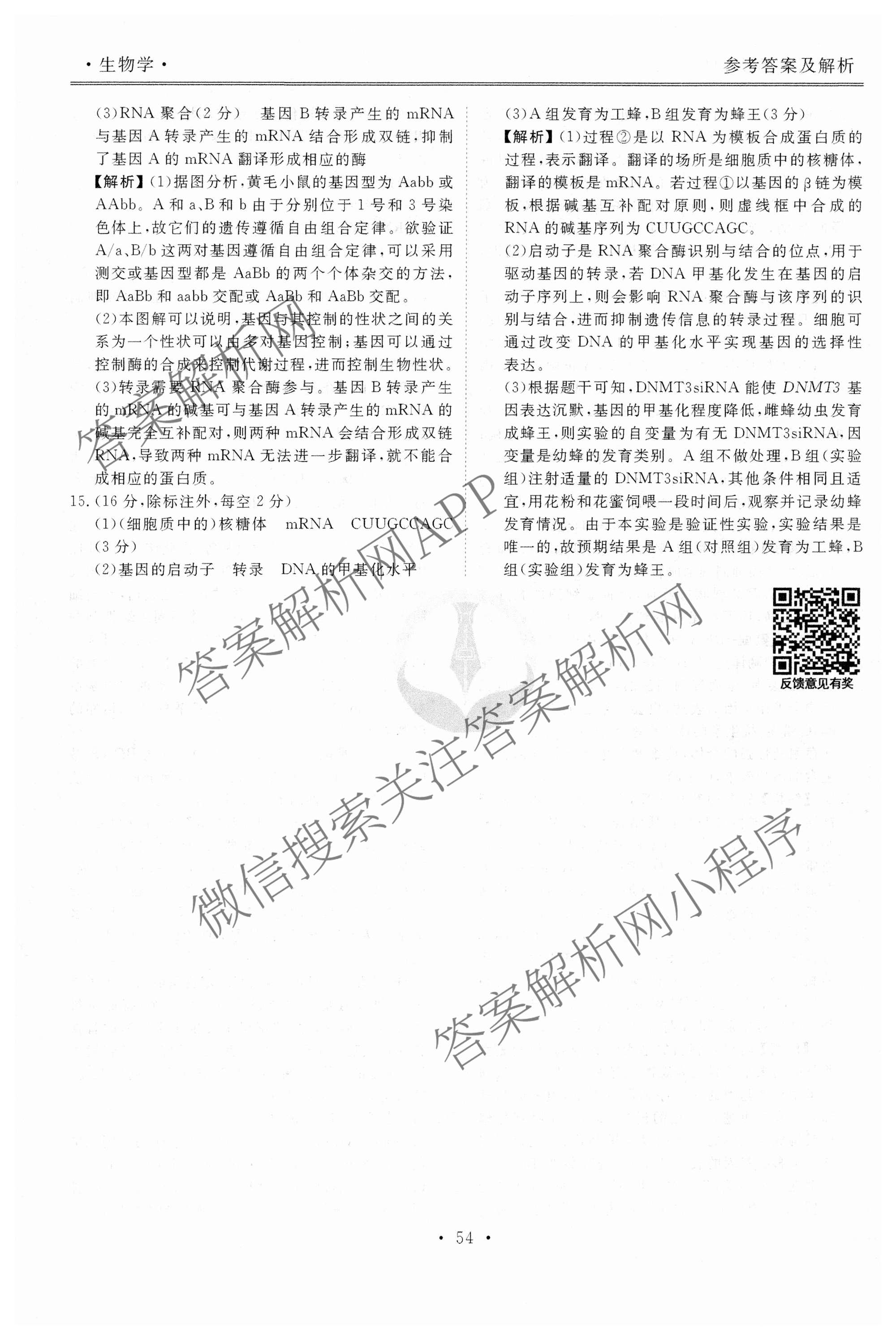 - 2024~2025[衡水金卷先享题]·(高三)一轮复习40分钟周测卷·生物(山东专版)(十四)14答案