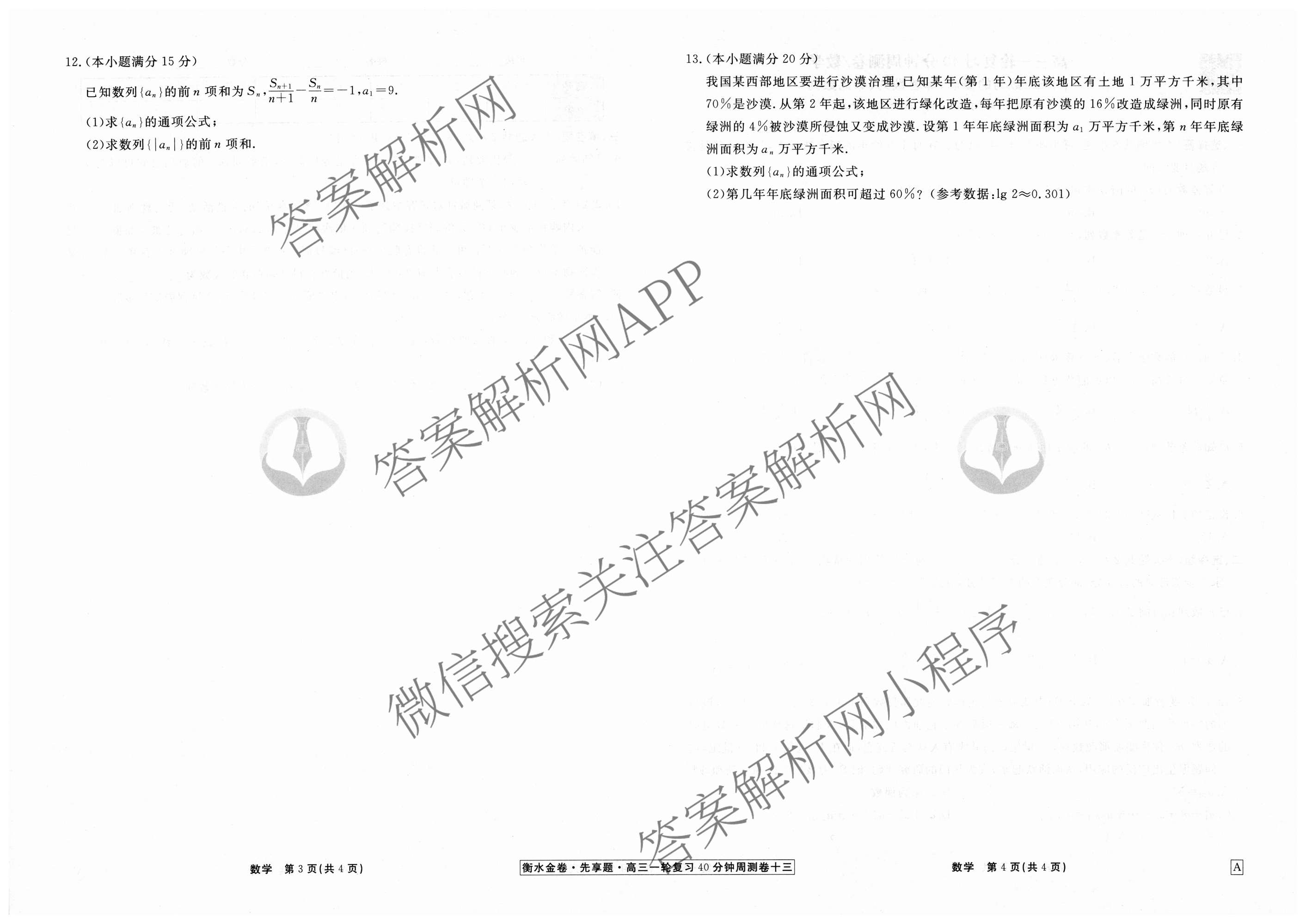- 2024~2025[衡水金卷先享题]·(高三)一轮复习40分钟周测卷·数学(A)(十三)13试题