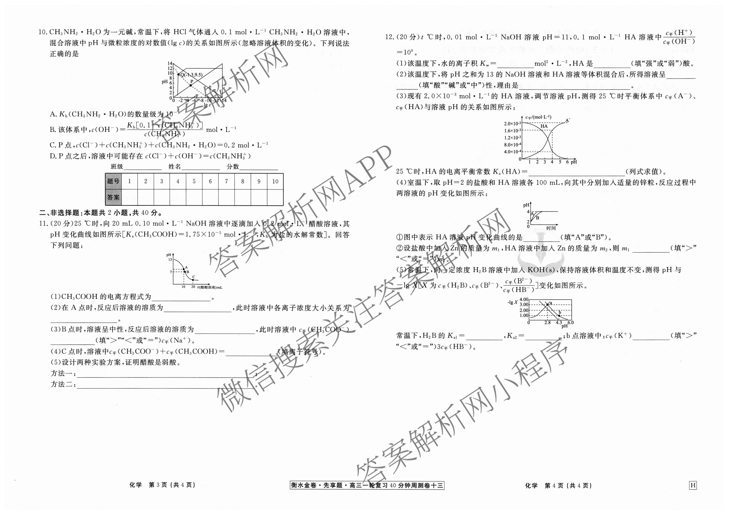 - (高三)2024~2025[衡水金卷先享题]·一轮复习40分钟周测卷·化学(山东专版)(十三)13答案