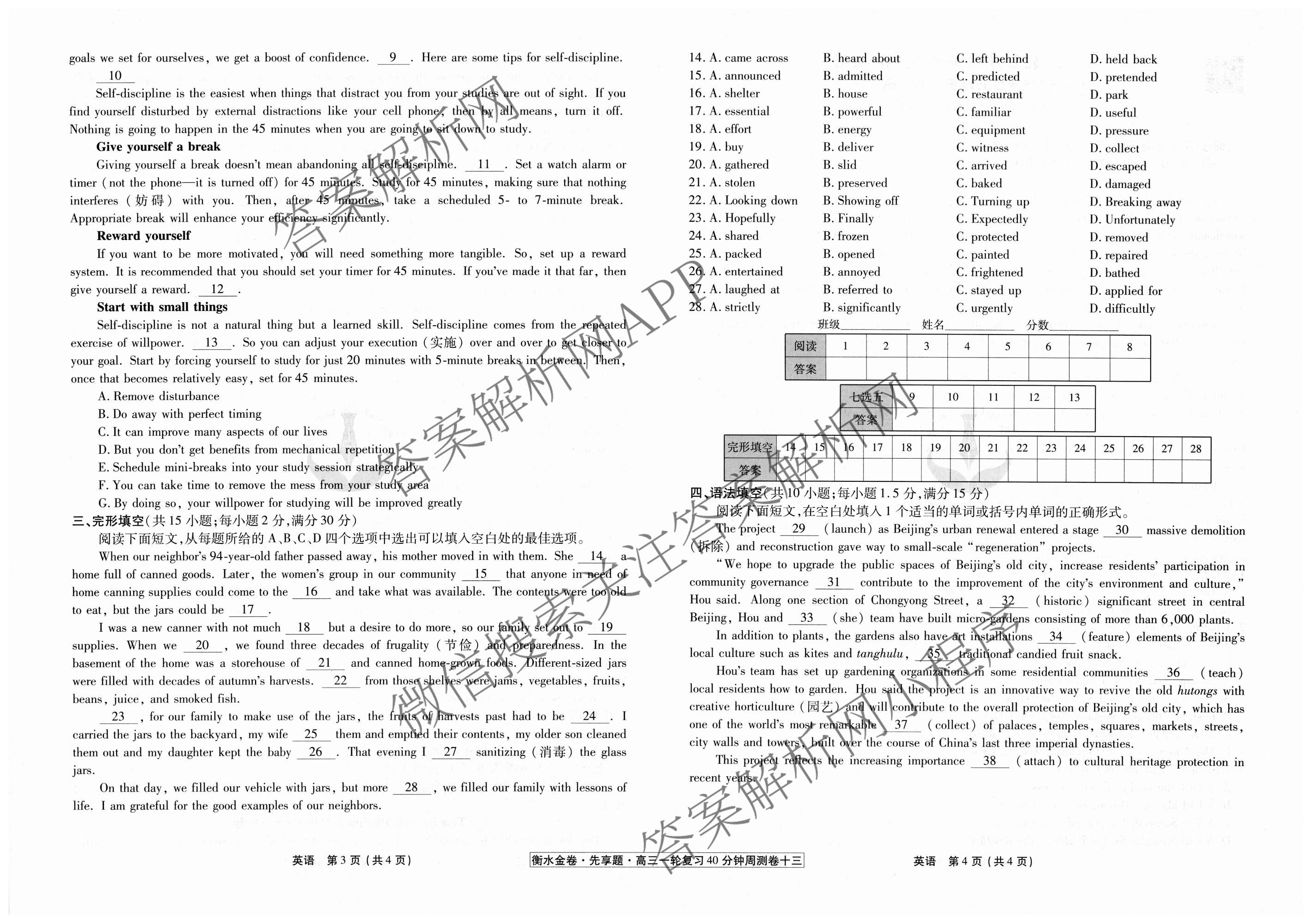- [高三]2024-2025[衡水金卷先享题]·一轮复习40分钟周测卷·英语(十三)13试题