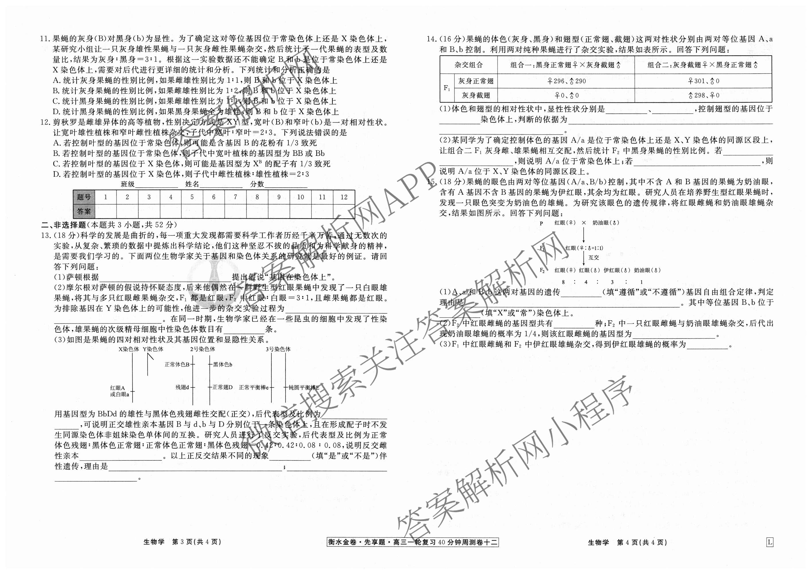 2024-2025衡水金卷先享题·高三一轮复习40分钟周测卷·生物(L)(十二)12试题,目前衡水金卷先享题答案网已经汇总了2024-2025衡水金卷先享题·高三一轮复习40分钟周测卷·生物(L)(十二)12试题的各科答案和试卷,获取更多衡水金卷先享题答案解析,请在关注本站。