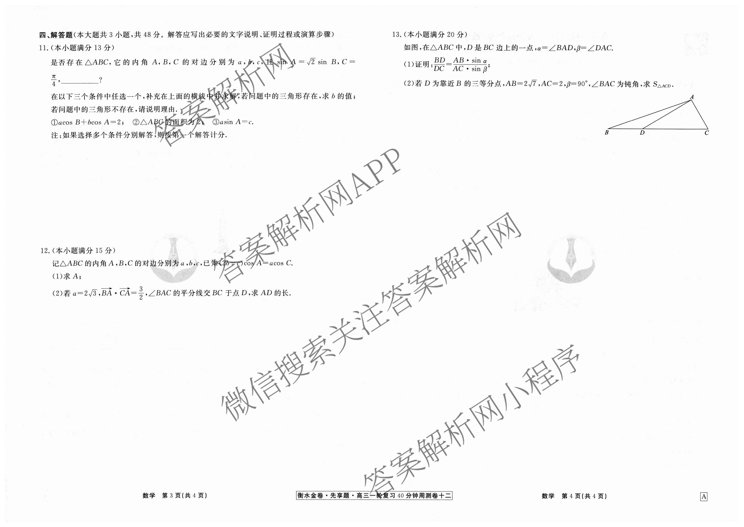 - [高三]2024~2025[衡水金卷先享题]·一轮复习40分钟周测卷·数学(A)(十二)12答案