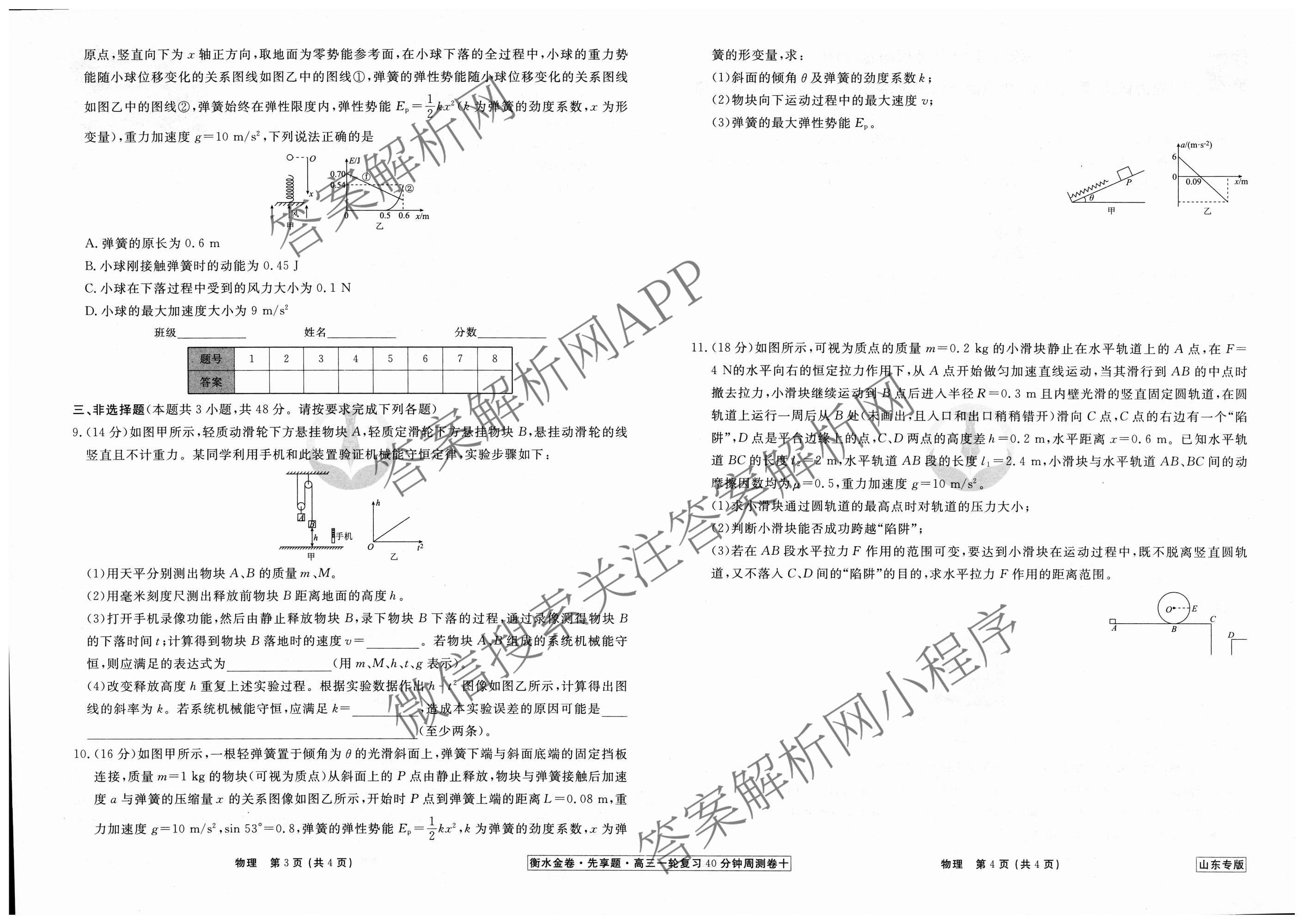 - 2024~2025[衡水金卷先享题]·(高三)一轮复习40分钟周测卷·物理(山东专版)(十)10答案