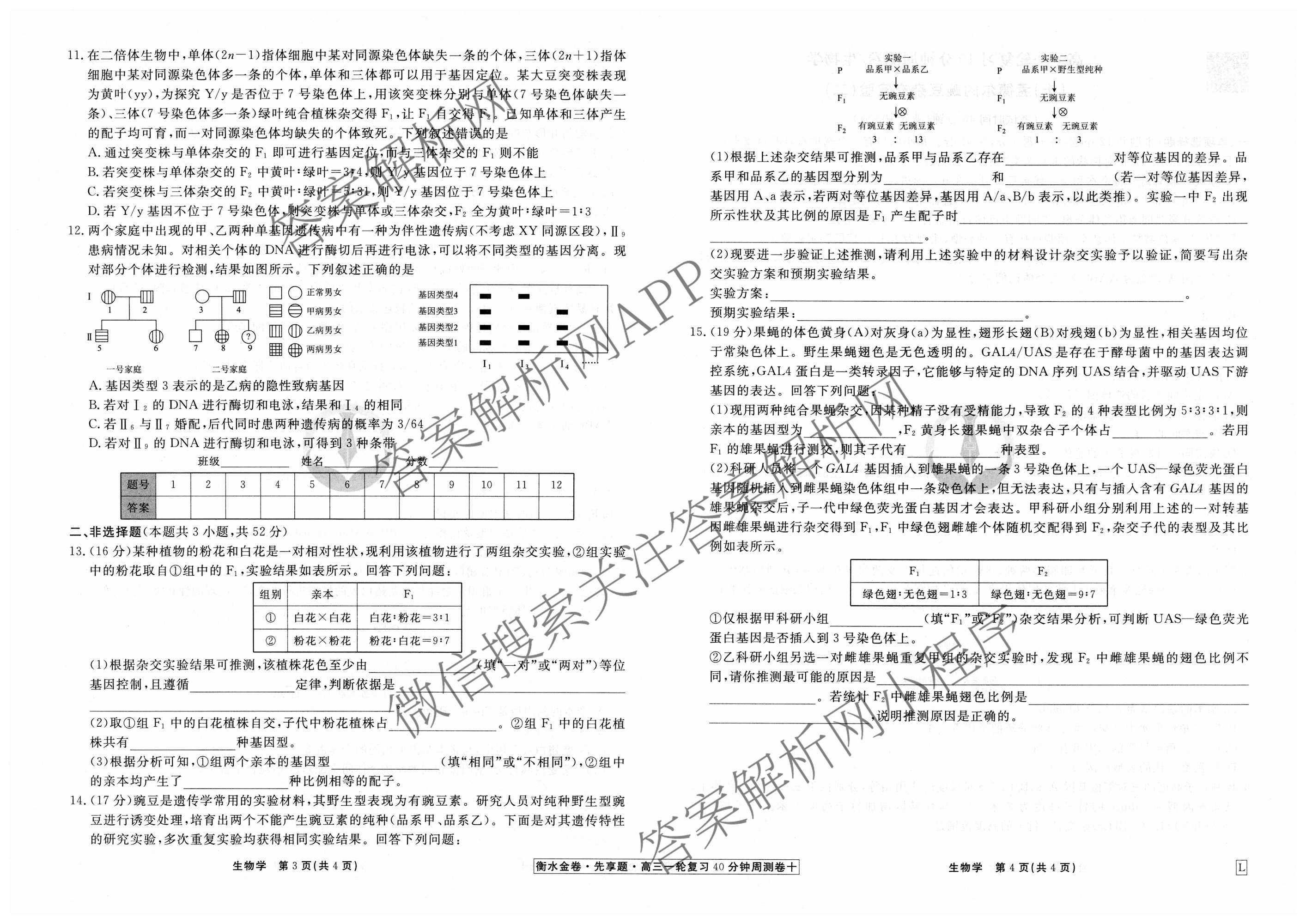- 2024~2025(高三)[衡水金卷先享题]·一轮复习40分钟周测卷·生物(湖南专版)(十)10试题