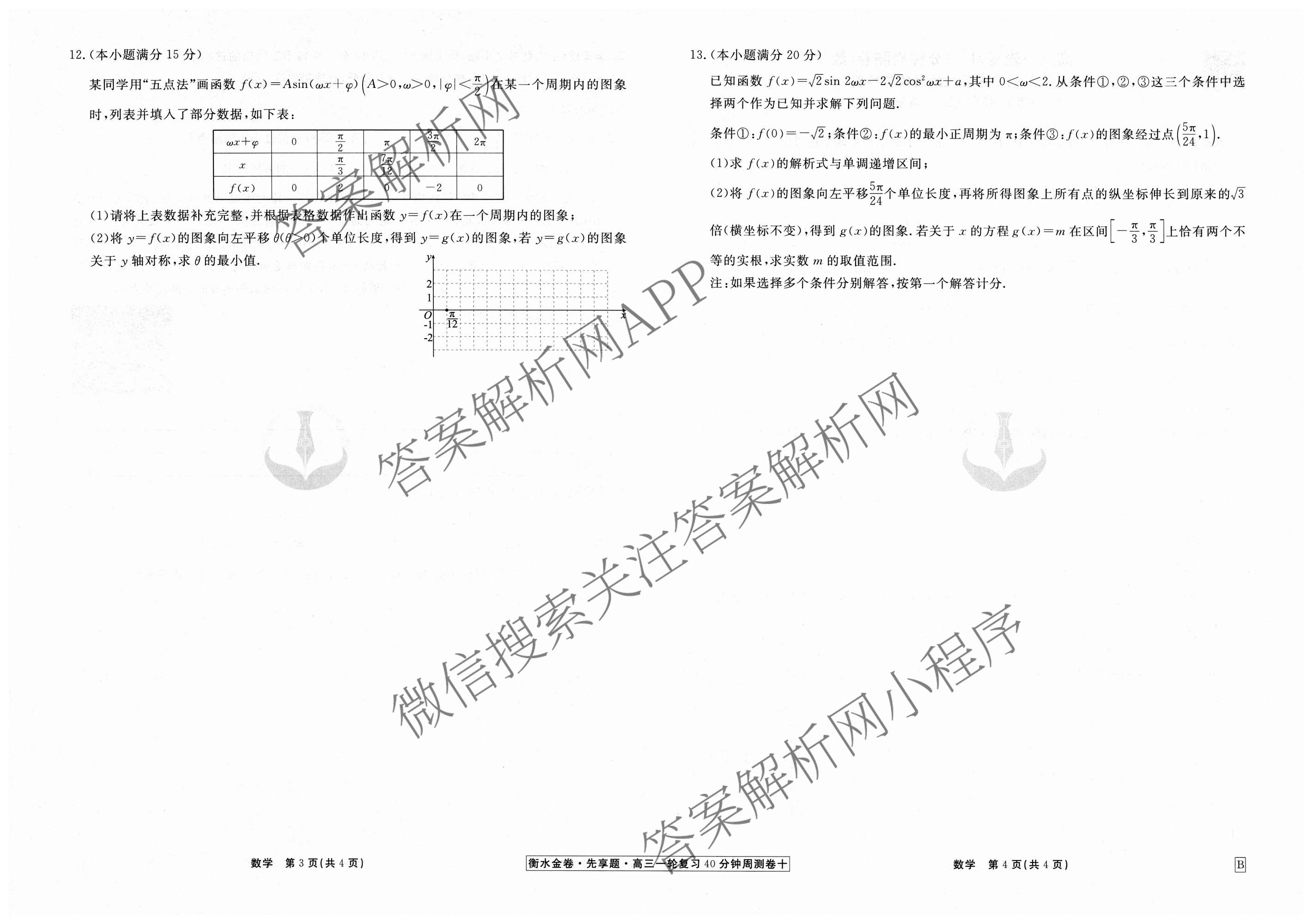 - 2024~2025(高三)(衡水金卷先享题)·一轮复习40分钟周测卷·数学(A)(十)10答案