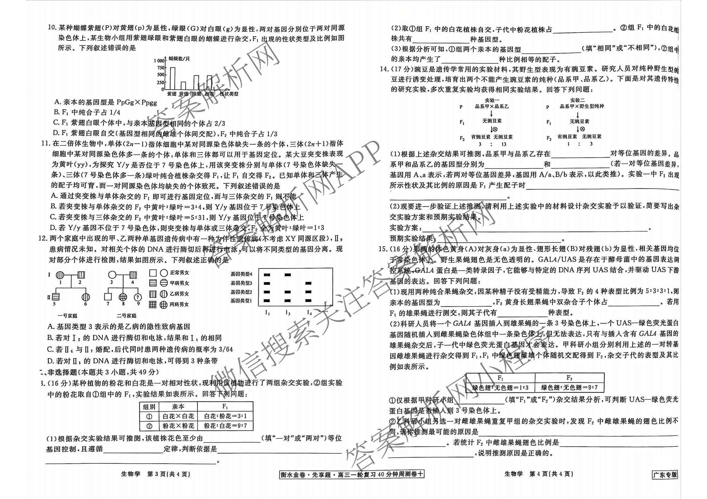 - 2024-2025[衡水金卷先享题](高三)一轮复习40分钟周测卷生物(广东专版)(十)10答案