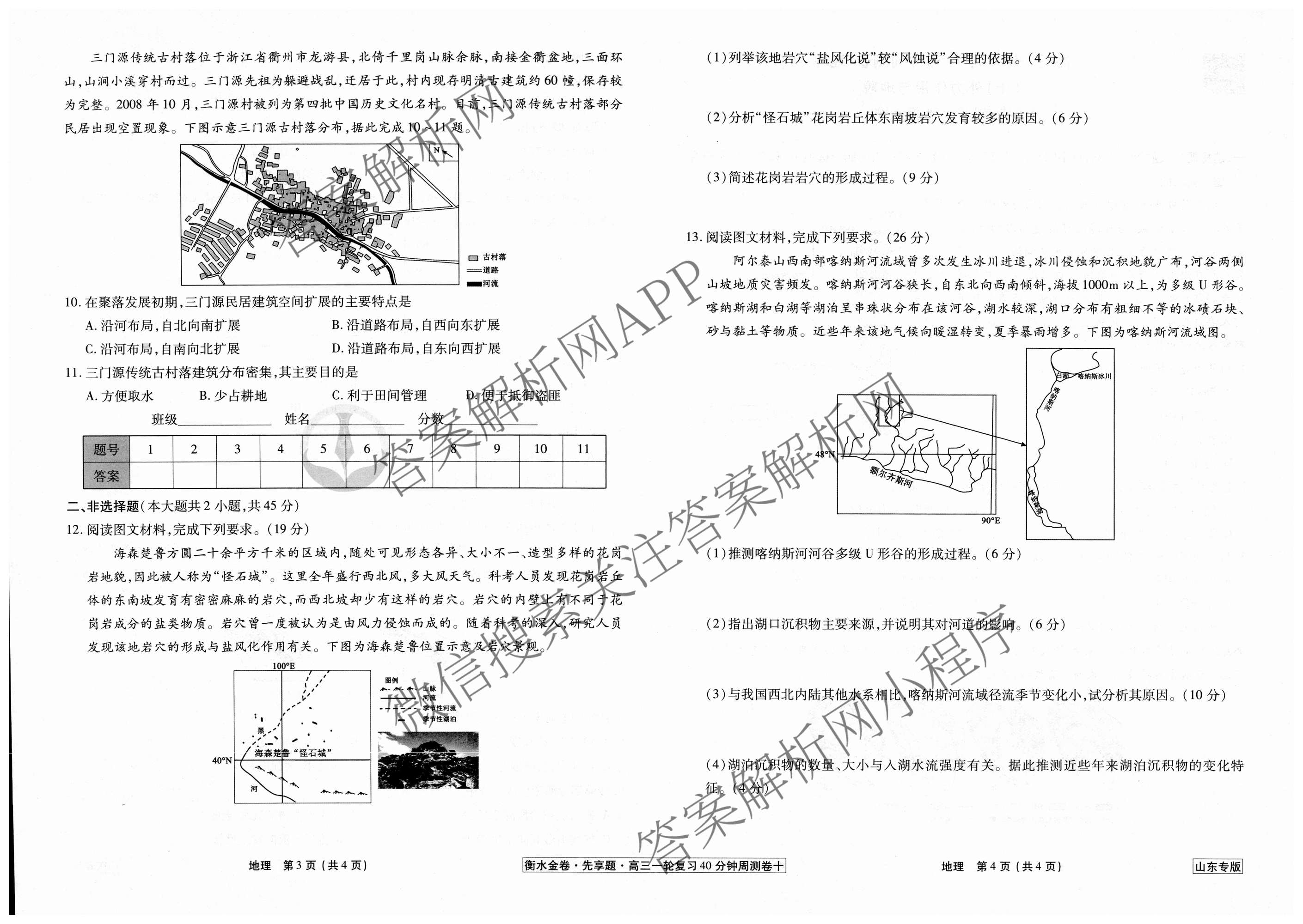 - 2024~2025高三(衡水金卷先享题)·一轮复习40分钟周测卷·地理(山东专版)(十)10答案