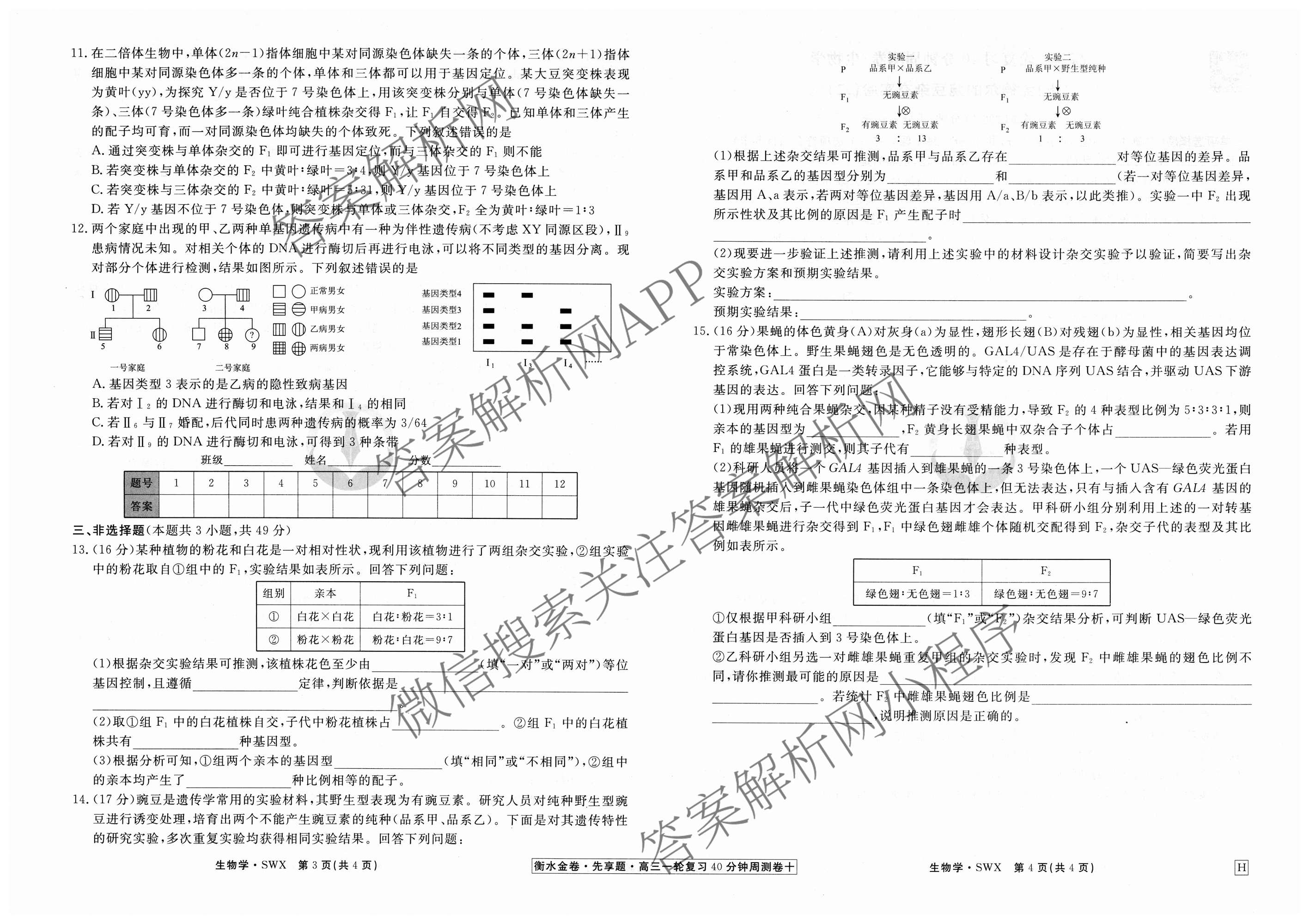2024-2025衡水金卷先享题·高三一轮复习40分钟周测卷·生物(SWX (H))(十)10试题,目前衡水金卷先享题答案网已经汇总了2024-2025衡水金卷先享题·高三一轮复习40分钟周测卷·生物(SWX (H))(十)10试题的各科答案和试卷,获取更多衡水金卷先享题答案解析,请在关注本站。
