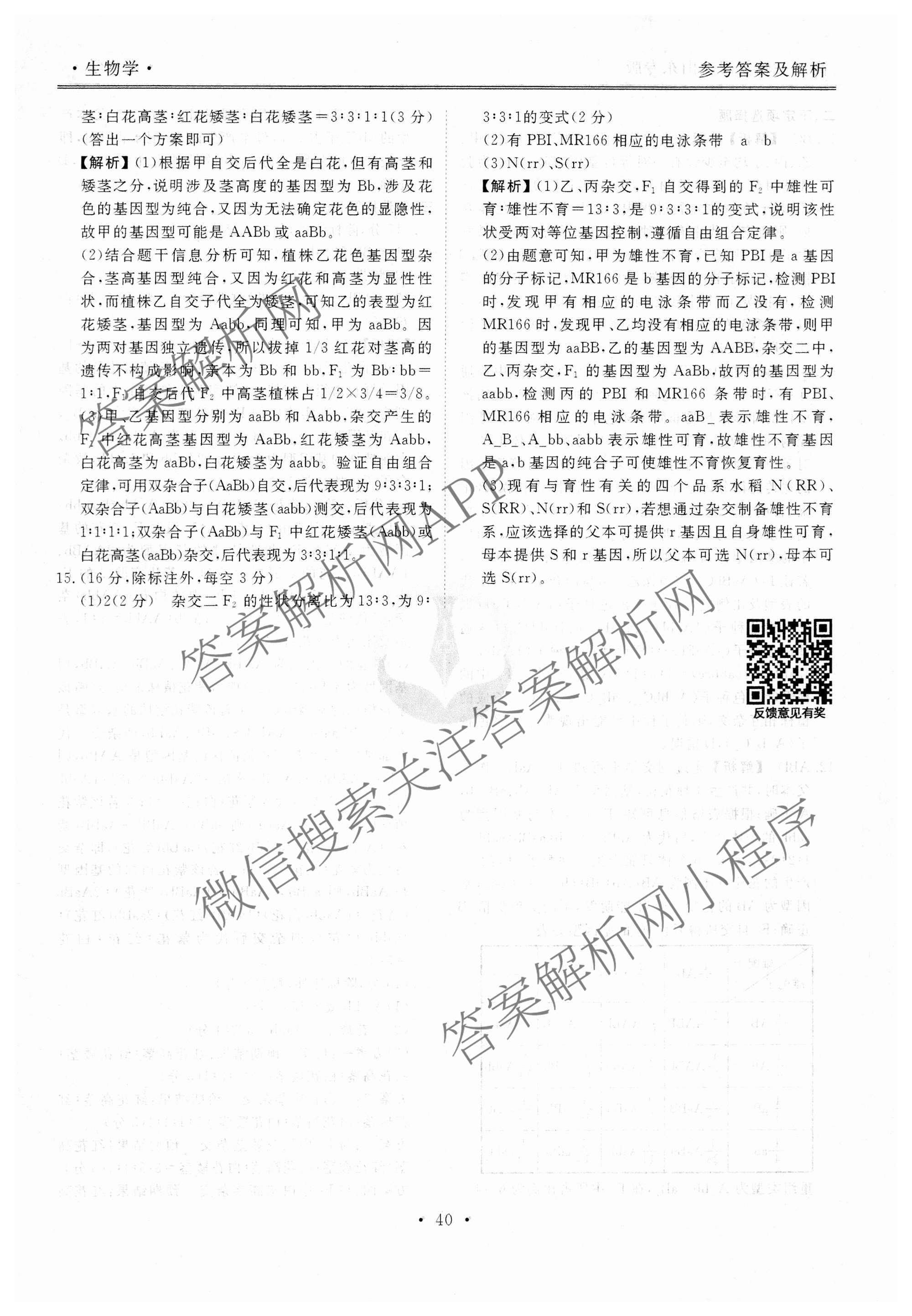 - 2024-2025[高三](衡水金卷先享题)·一轮复习40分钟周测卷·生物(湖南专版)(十)10答案