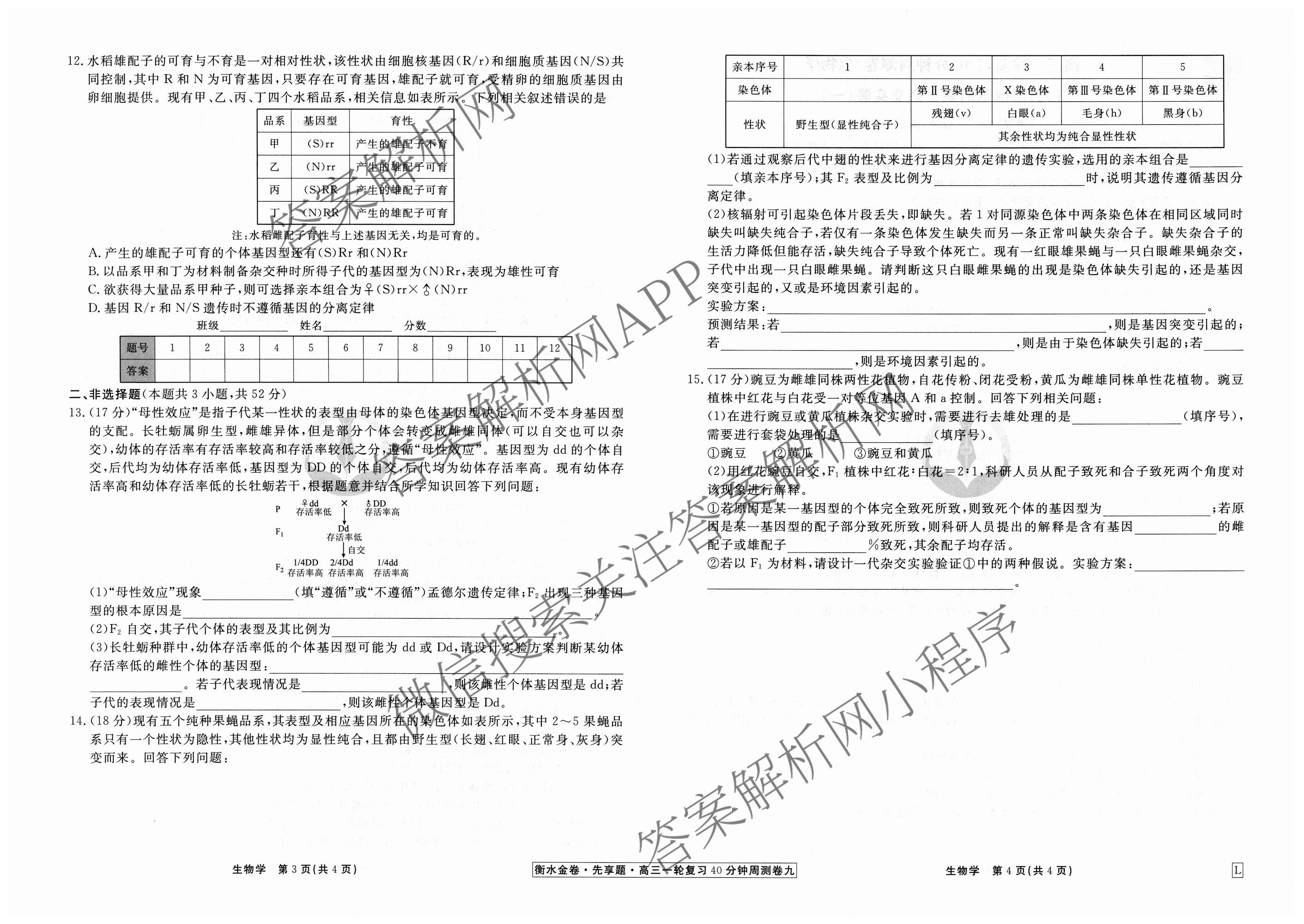 - [高三]2024~2025(衡水金卷先享题)·一轮复习40分钟周测卷·生物(L)(九)9答案