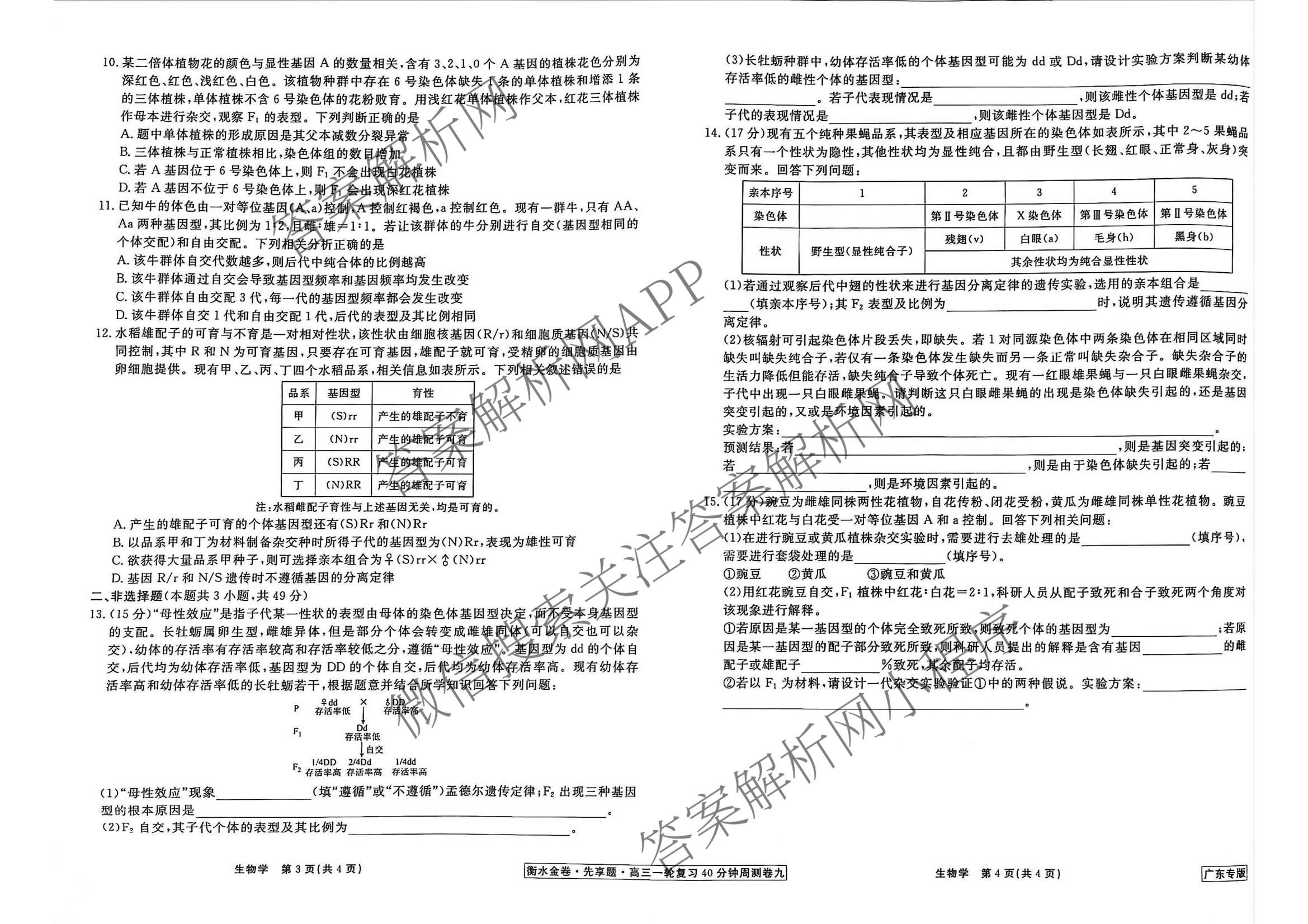 - (高三)2024~2025(衡水金卷先享题)一轮复习40分钟周测卷生物(H)(九)9试题