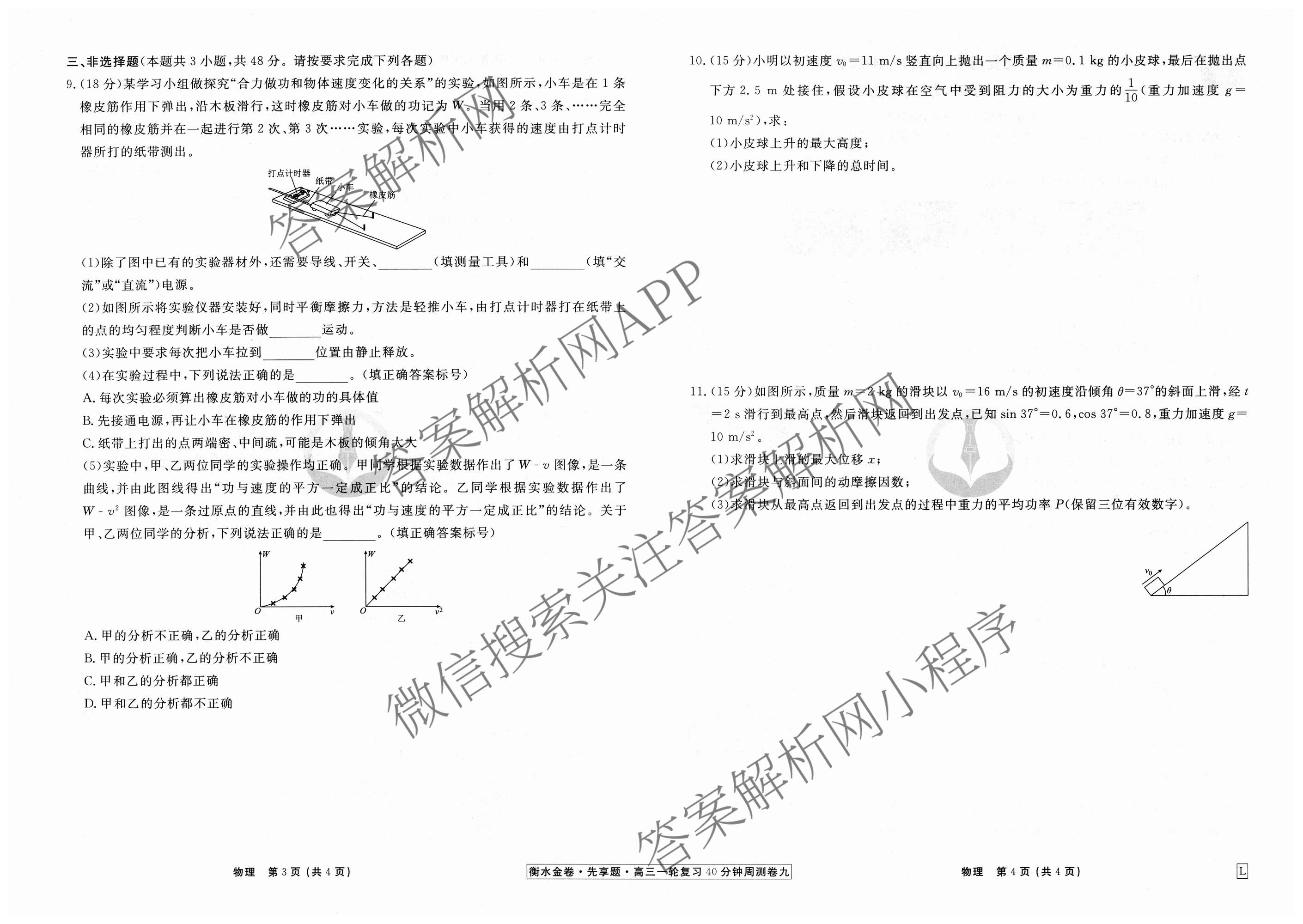 - 2024-2025(衡水金卷先享题)[高三]一轮复习40分钟周测卷物理(山东专版)(九)9试题