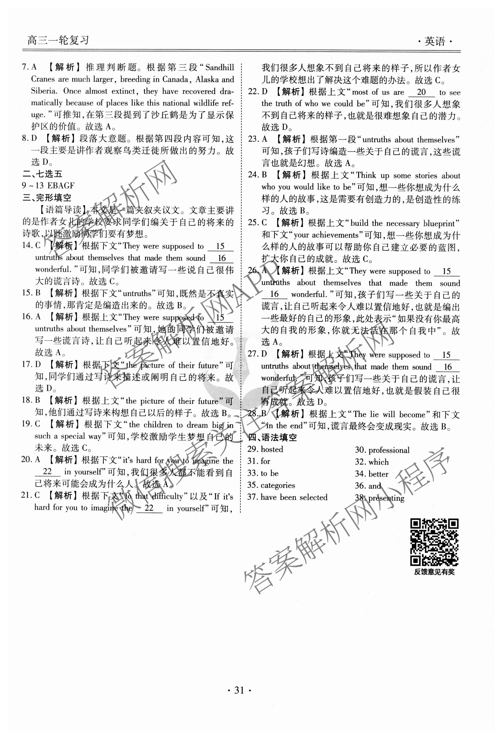 - 2024-2025[高三][衡水金卷先享题]·一轮复习40分钟周测卷·英语(G)(九)9答案