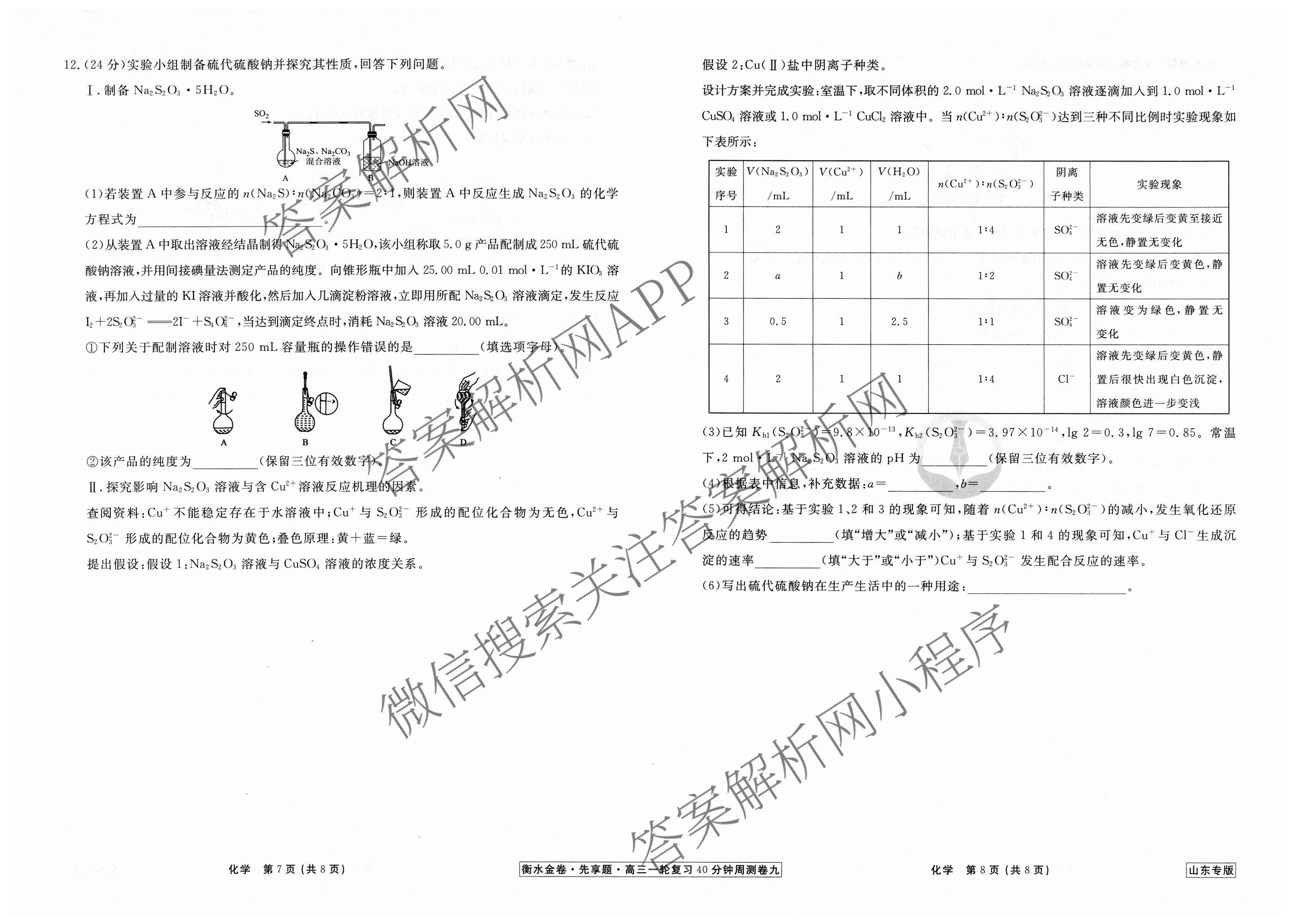 2024-2025衡水金卷先享题·高三一轮复习40分钟周测卷·化学(山东专版)(九)9试题,目前衡水金卷先享题答案网已经汇总了2024-2025衡水金卷先享题·高三一轮复习40分钟周测卷·化学(山东专版)(九)9试题的各科答案和试卷,获取更多衡水金卷先享题答案解析,请在关注本站。