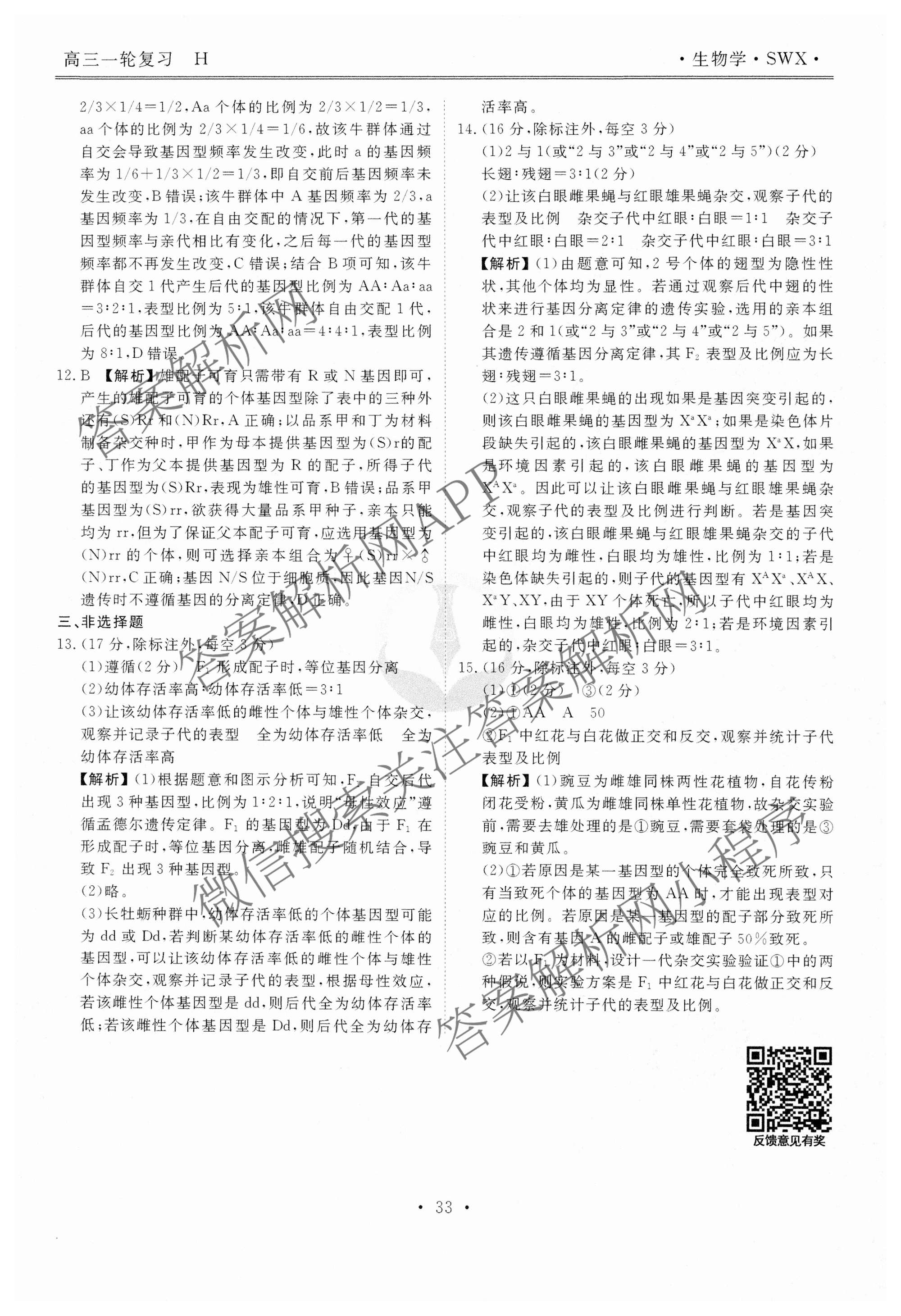 - (高三)2024-2025[衡水金卷先享题]·一轮复习40分钟周测卷·生物(SWX (H))(九)9答案