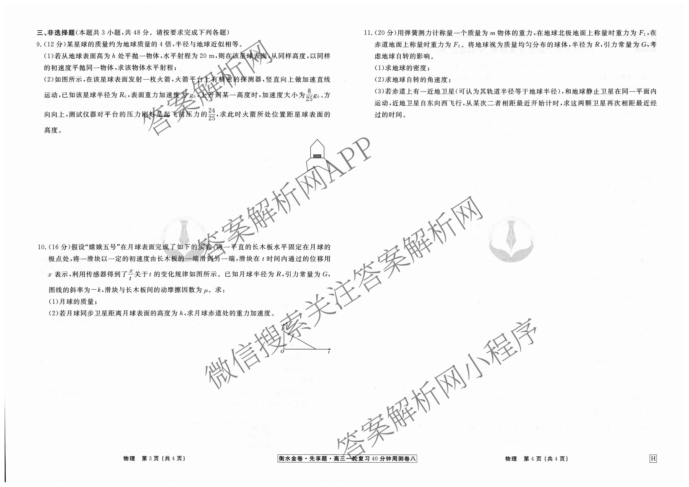 - 2024~2025[衡水金卷先享题]·[高三]一轮复习40分钟周测卷·物理(H)(八)8答案