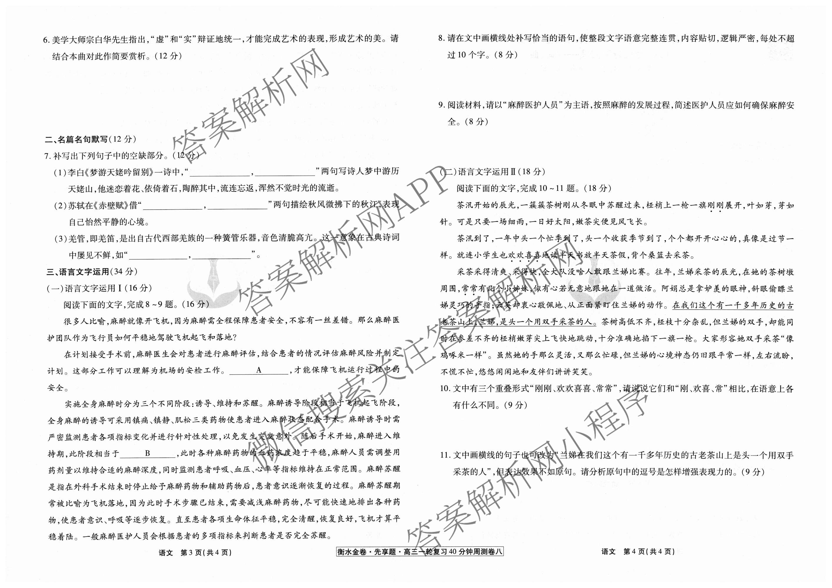 2024-2025衡水金卷先享题·高三一轮复习40分钟周测卷·语文(八)8试题,目前衡水金卷先享题答案网已经汇总了2024-2025衡水金卷先享题·高三一轮复习40分钟周测卷·语文(八)8试题的各科答案和试卷,获取更多衡水金卷先享题答案解析,请在关注本站。