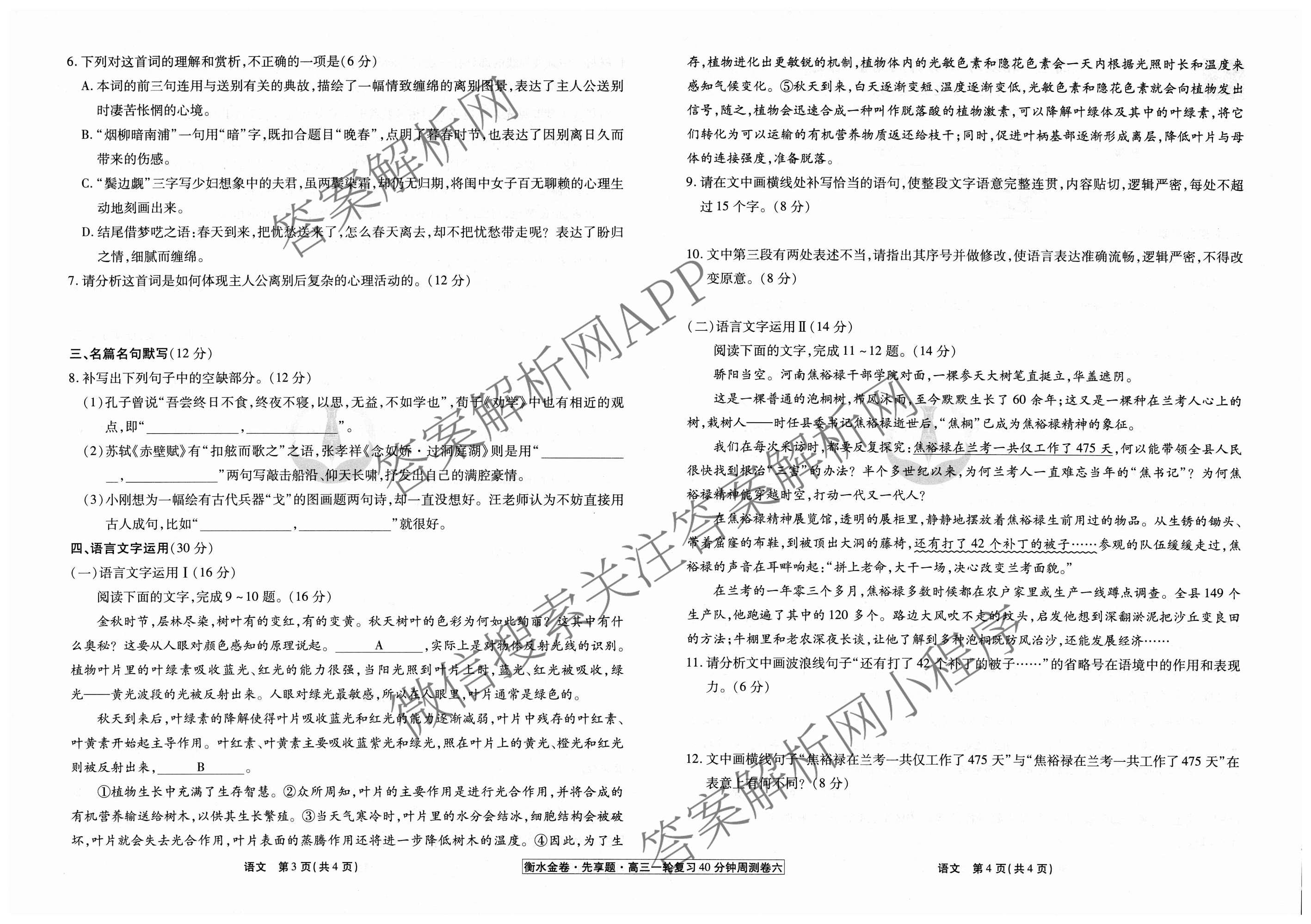 2024-2025衡水金卷先享题·高三一轮复习40分钟周测卷·语文(六)6试题,目前衡水金卷先享题答案网已经汇总了2024-2025衡水金卷先享题·高三一轮复习40分钟周测卷·语文(六)6试题的各科答案和试卷,获取更多衡水金卷先享题答案解析,请在关注本站。
