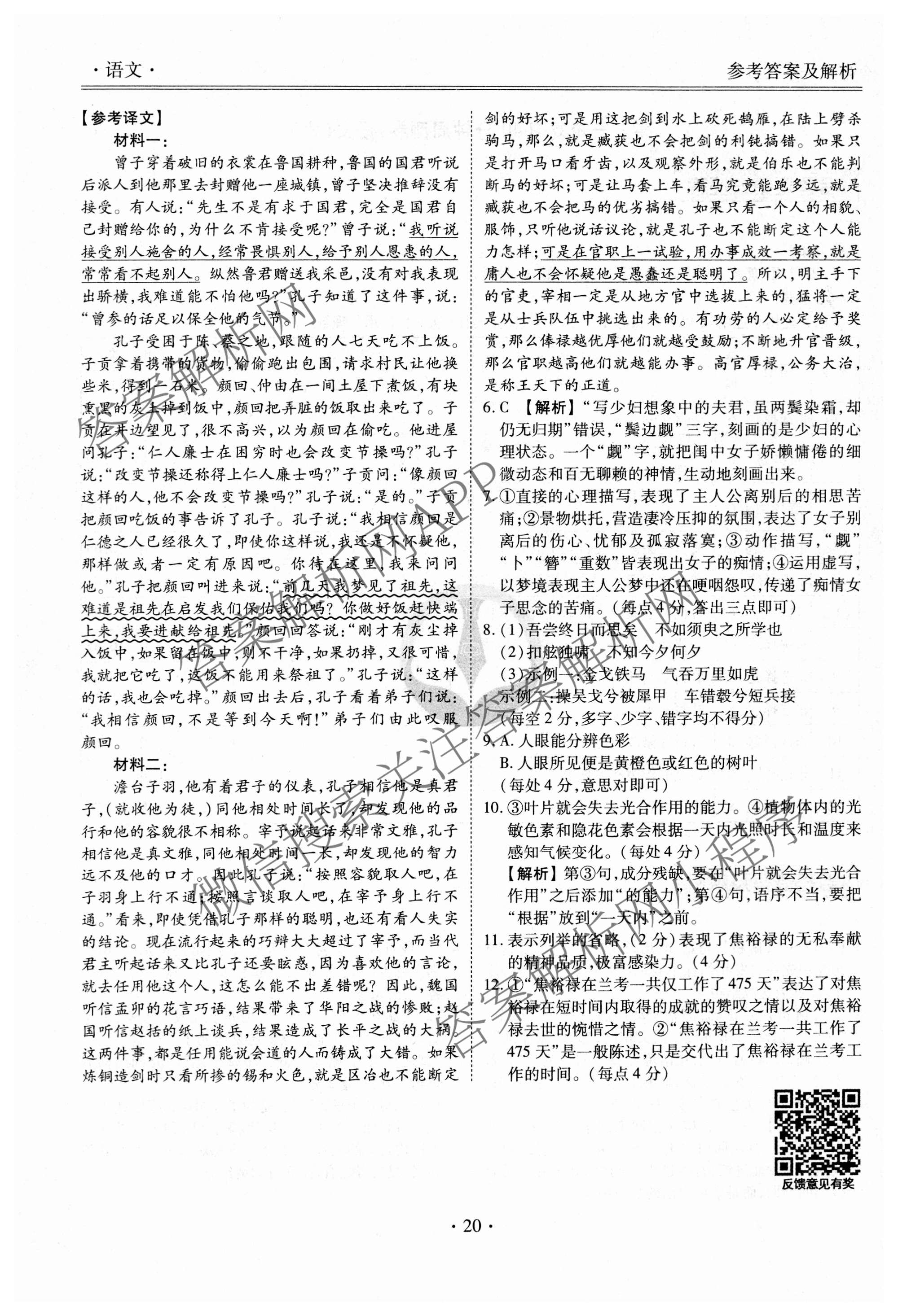 - 2024-2025[高三](衡水金卷先享题)·一轮复习40分钟周测卷·语文(六)6答案
