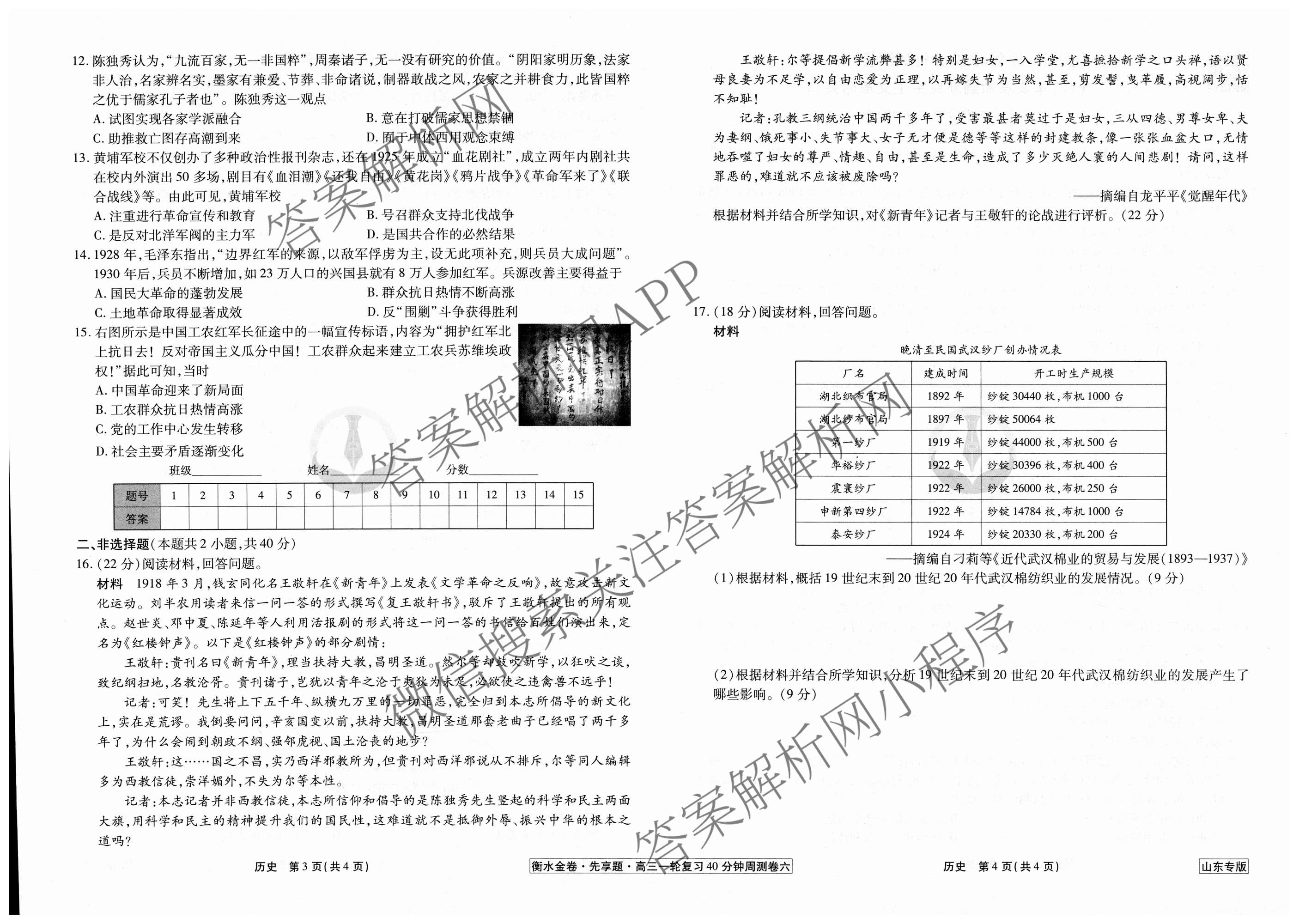 2024-2025衡水金卷先享题·高三一轮复习40分钟周测卷·历史(山东专版)(六)6试题,目前衡水金卷先享题答案网已经汇总了2024-2025衡水金卷先享题·高三一轮复习40分钟周测卷·历史(山东专版)(六)6试题的各科答案和试卷,获取更多衡水金卷先享题答案解析,请在关注本站。