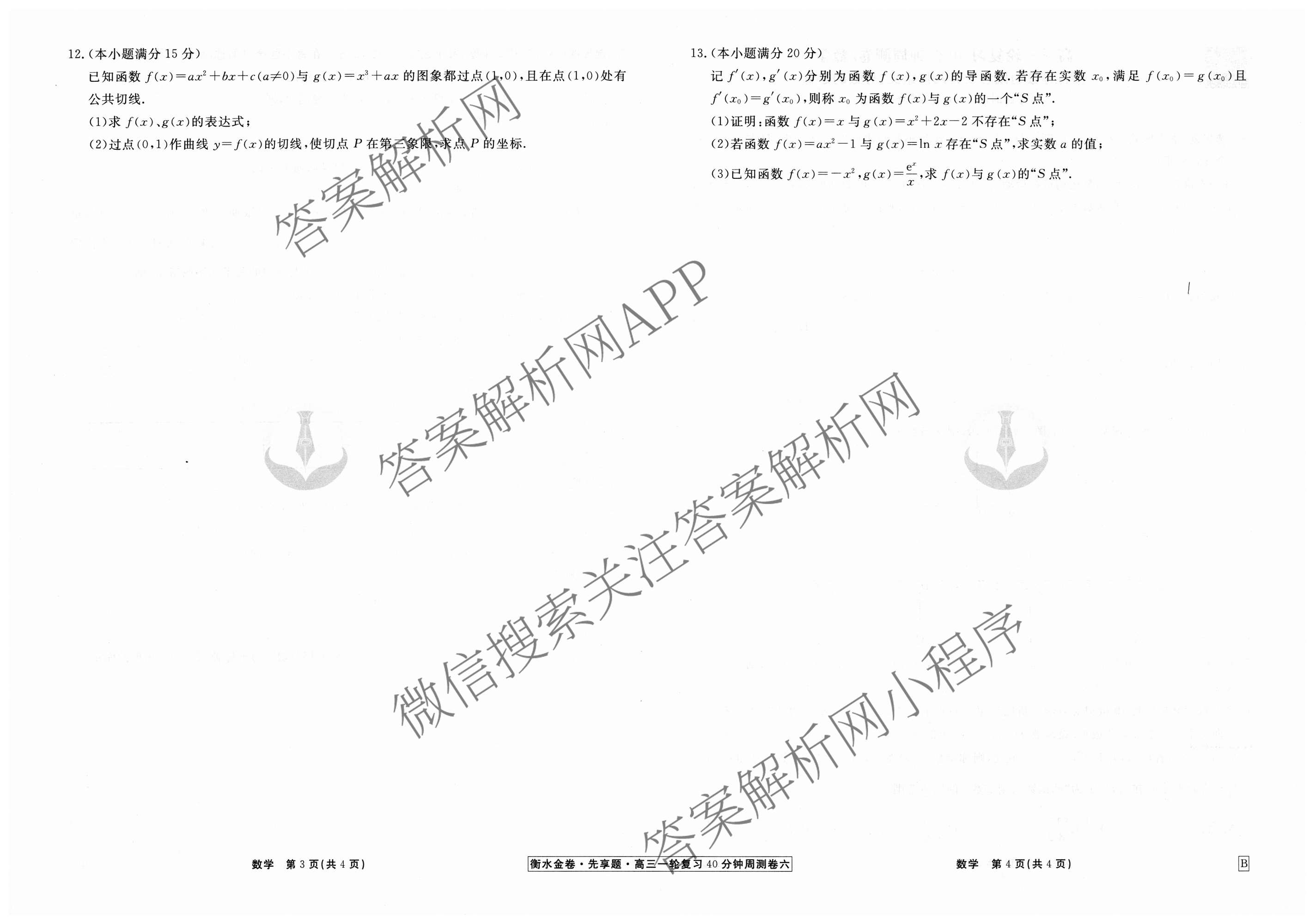 - 2024~2025(衡水金卷先享题)·(高三)一轮复习40分钟周测卷·数学(B)(六)6答案