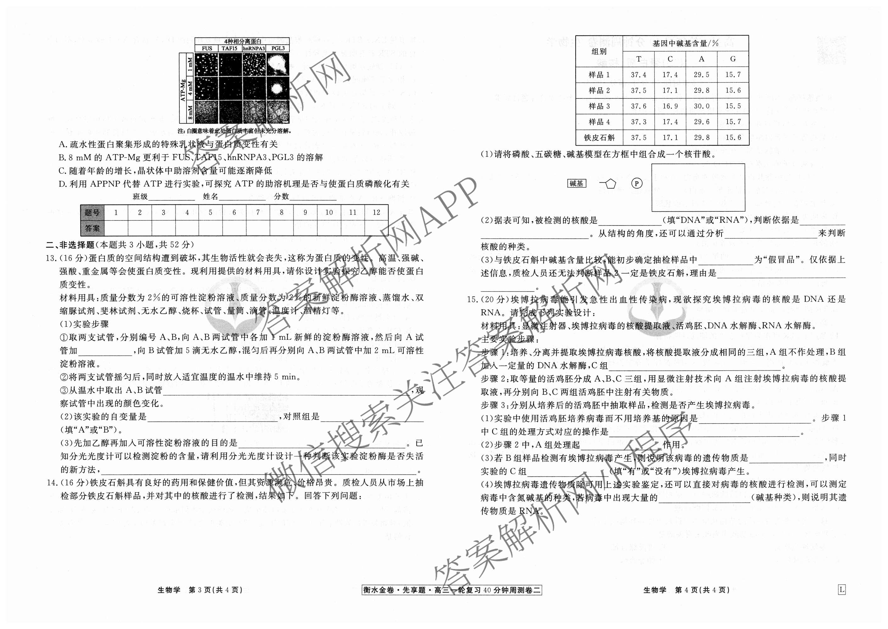 2024-2025衡水金卷先享题·高三一轮复习40分钟周测卷·生物(L)(二)2试题,目前衡水金卷先享题答案网已经汇总了2024-2025衡水金卷先享题·高三一轮复习40分钟周测卷·生物(L)(二)2试题的各科答案和试卷,获取更多衡水金卷先享题答案解析,请在关注本站。