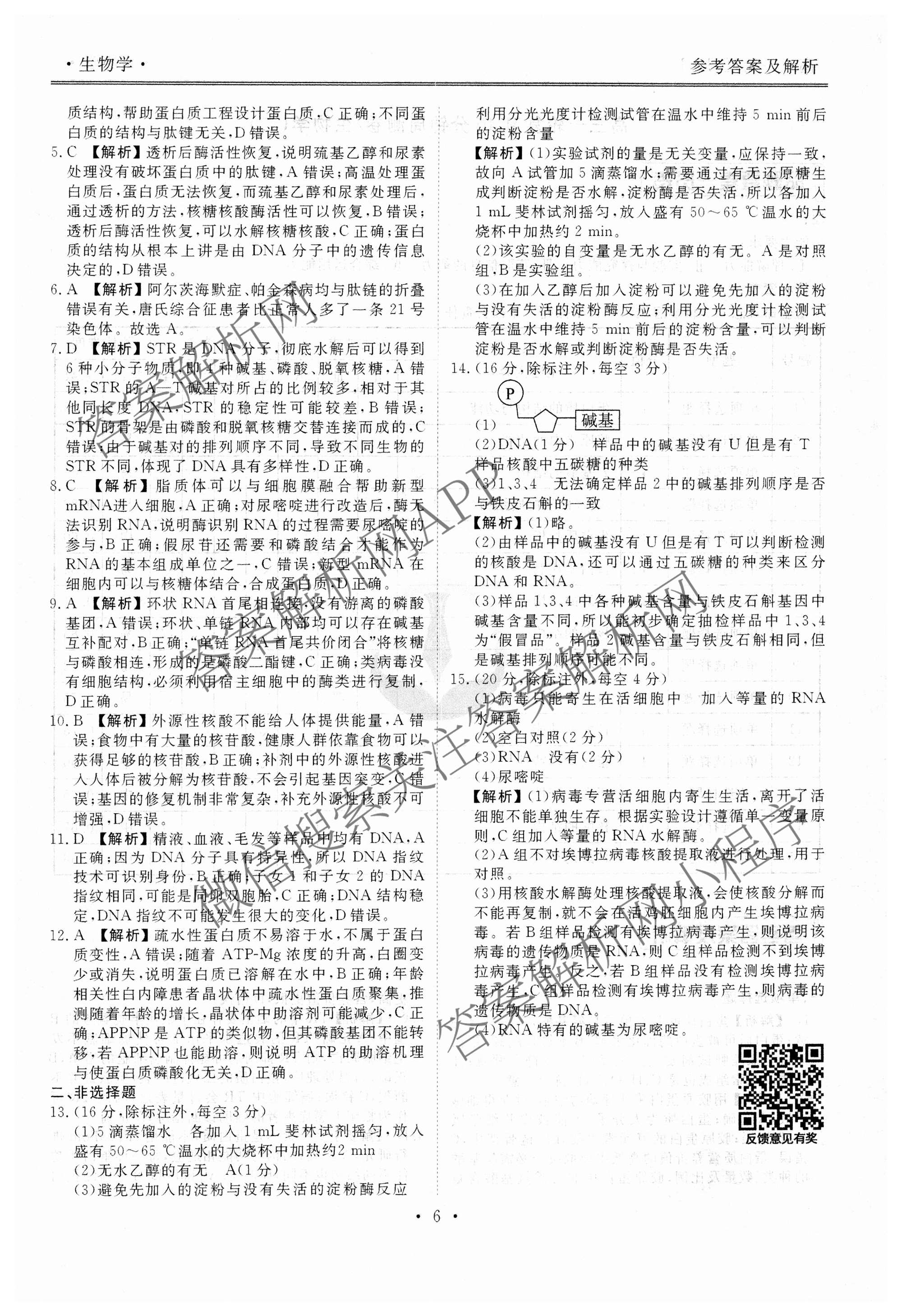 - 2024~2025[高三](衡水金卷先享题)·一轮复习40分钟周测卷·生物(湖南专版)(二)2答案