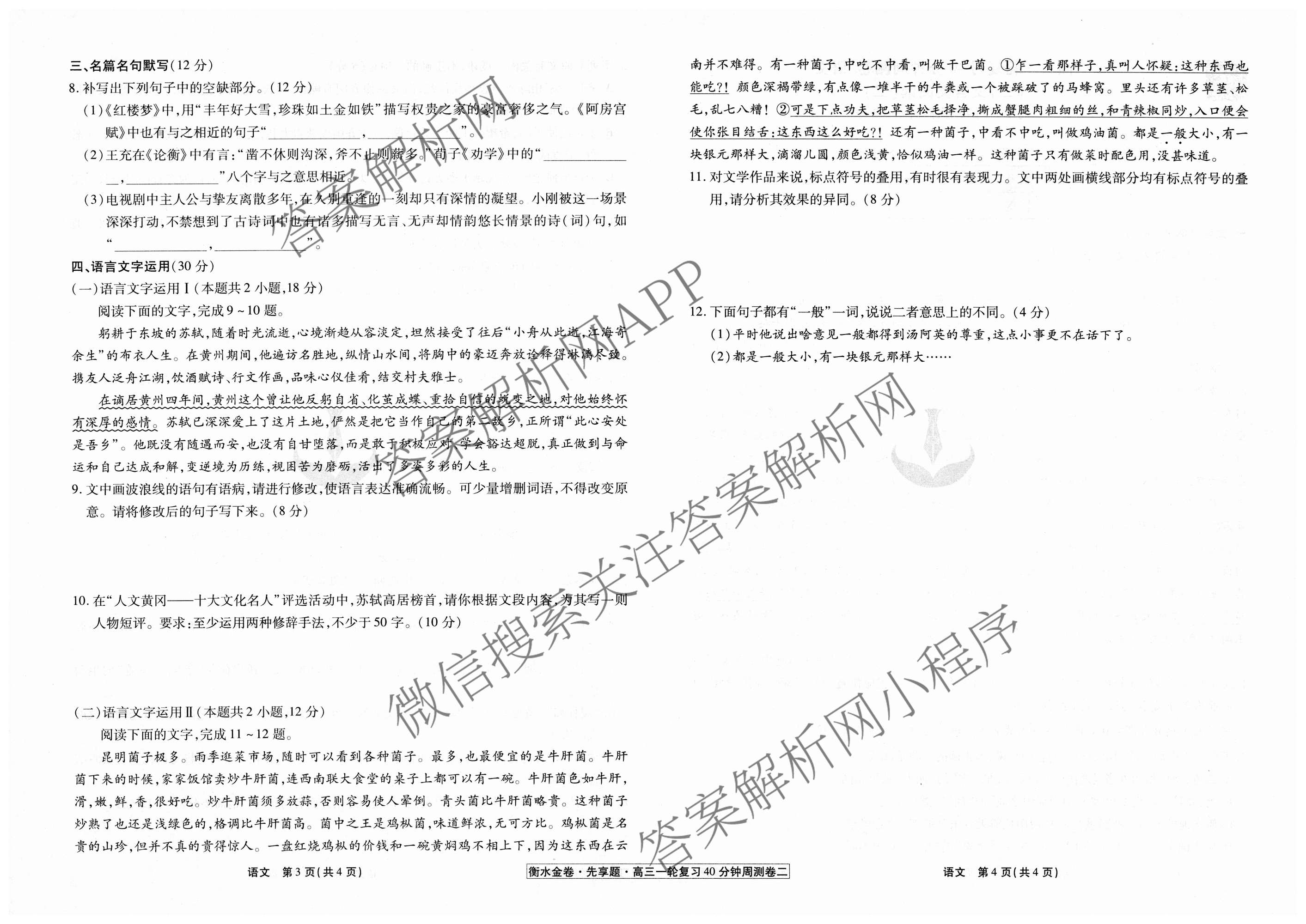 2024-2025衡水金卷先享题·高三一轮复习40分钟周测卷·语文(二)2试题,目前衡水金卷先享题答案网已经汇总了2024-2025衡水金卷先享题·高三一轮复习40分钟周测卷·语文(二)2试题的各科答案和试卷,获取更多衡水金卷先享题答案解析,请在关注本站。