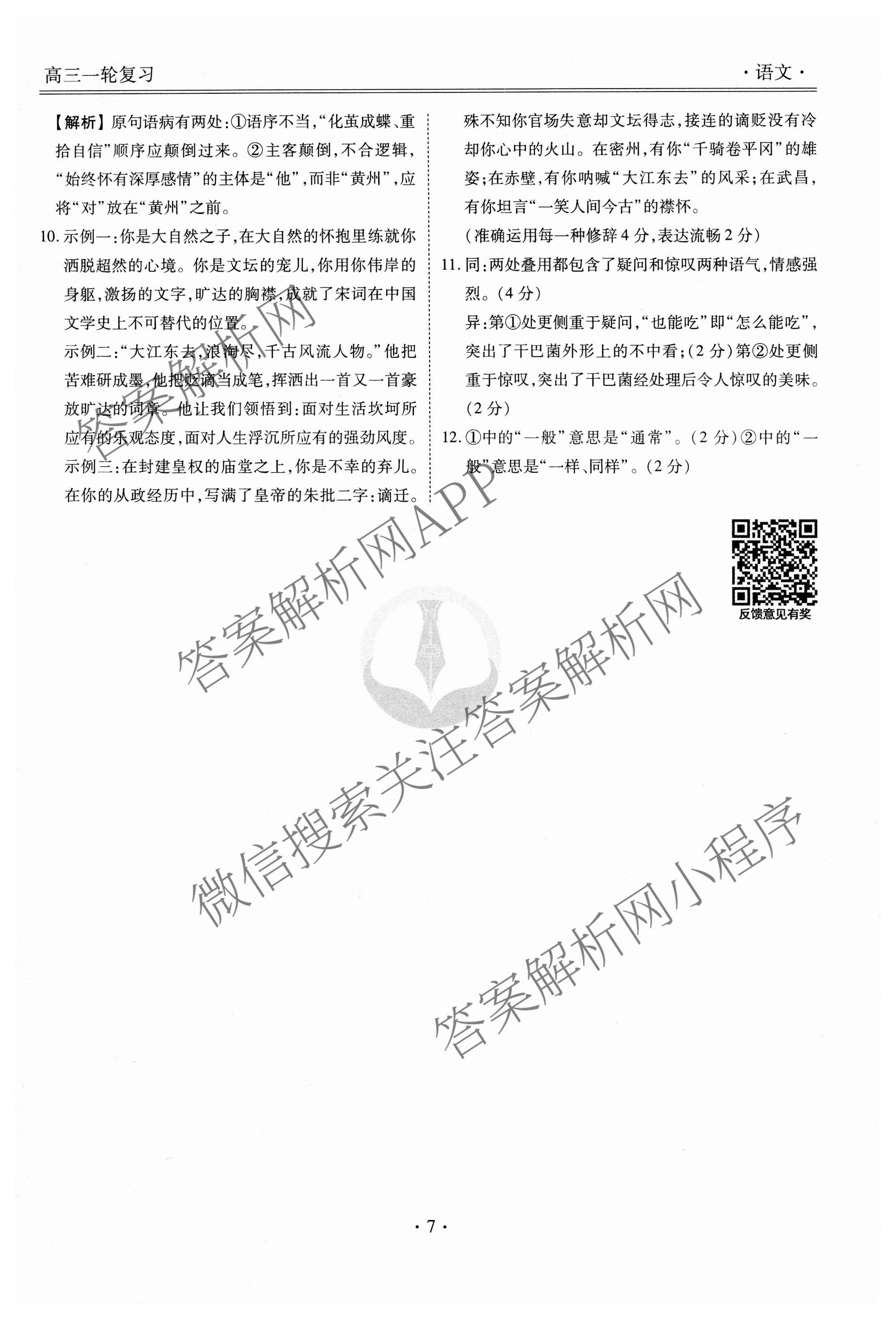 - (高三)2024~2025[衡水金卷先享题]·一轮复习40分钟周测卷·语文(二)2答案