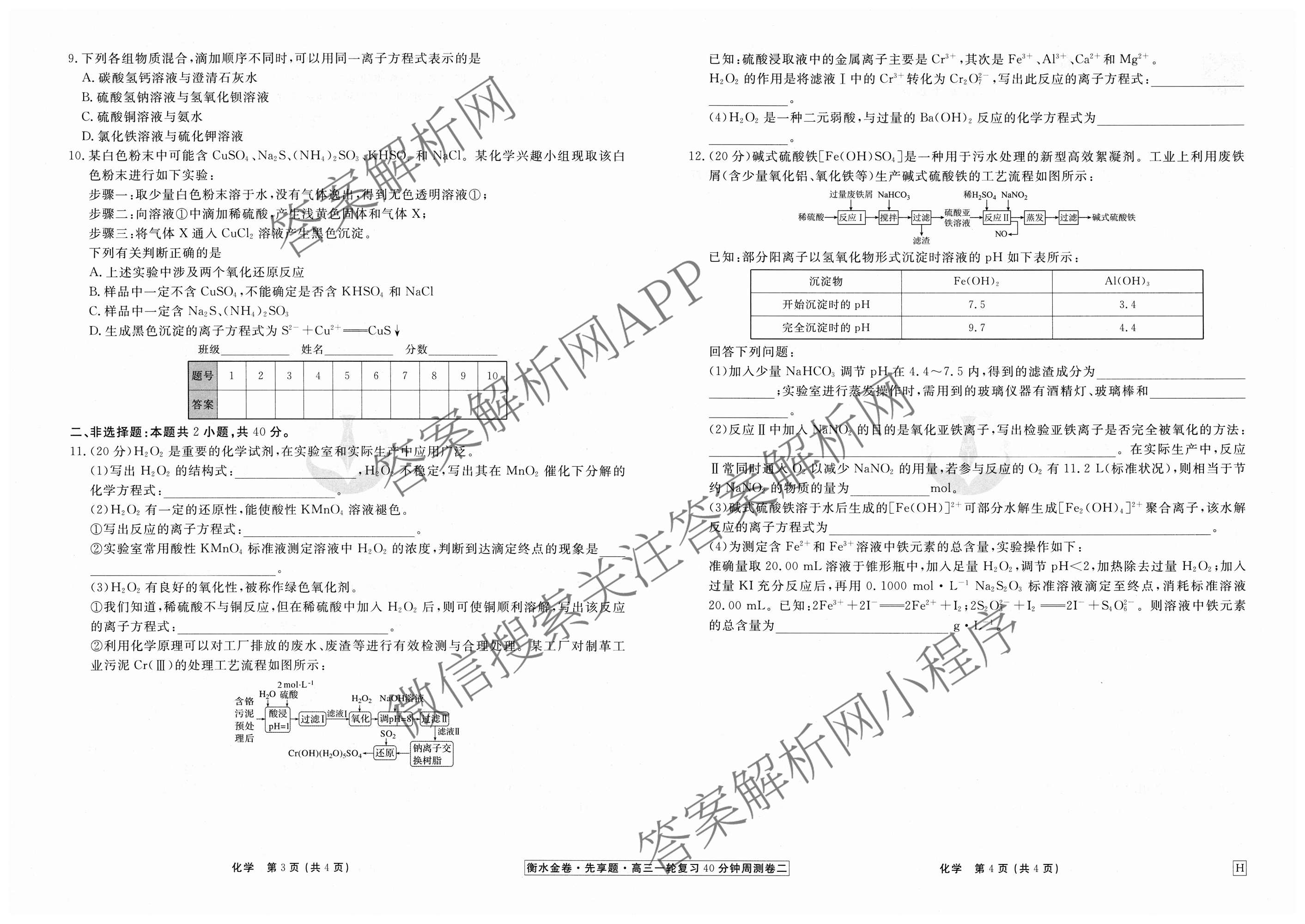 2024-2025衡水金卷先享题·高三一轮复习40分钟周测卷·化学(H)(二)2试题,目前衡水金卷先享题答案网已经汇总了2024-2025衡水金卷先享题·高三一轮复习40分钟周测卷·化学(H)(二)2试题的各科答案和试卷,获取更多衡水金卷先享题答案解析,请在关注本站。