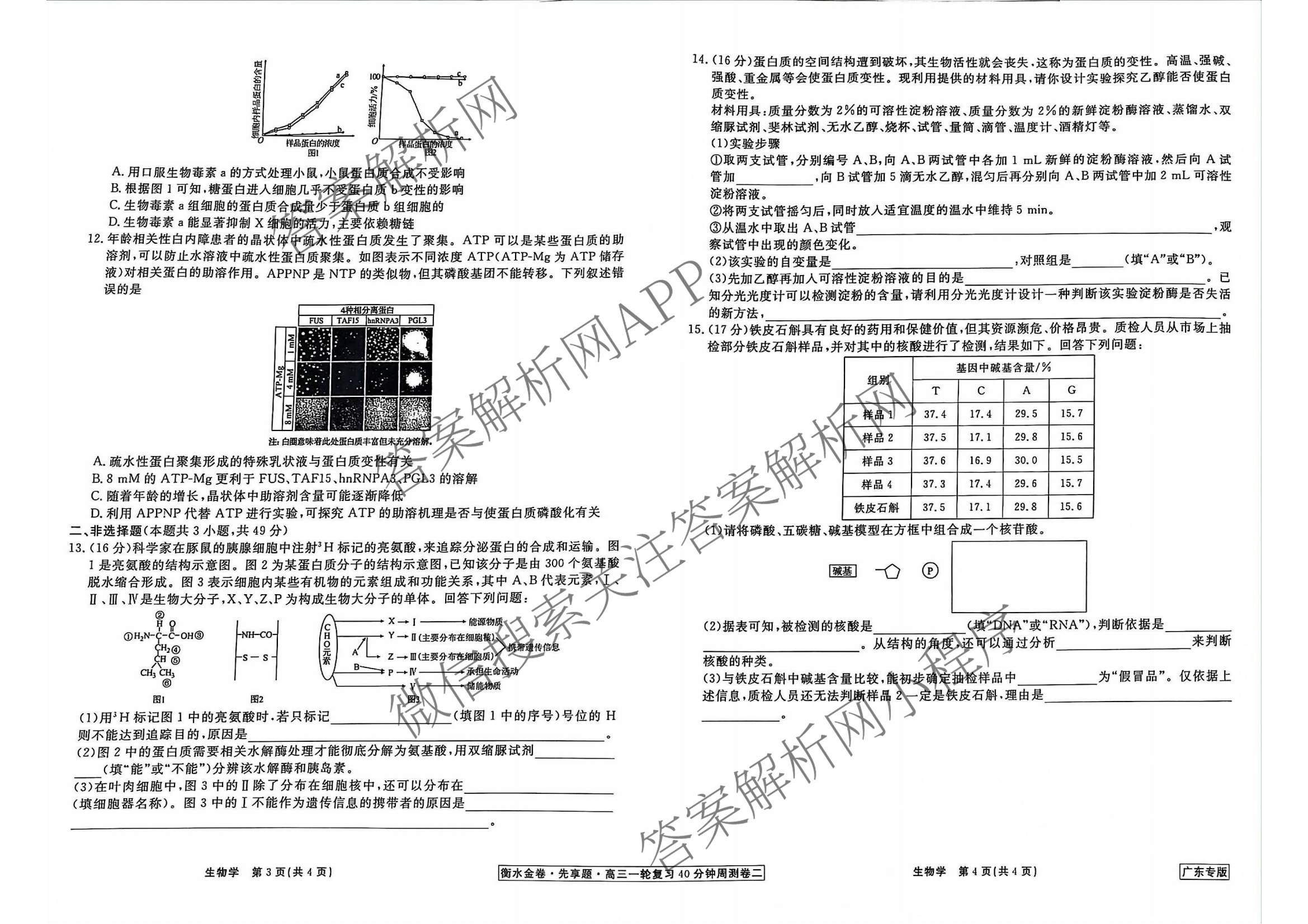 - [高三]2024-2025(衡水金卷先享题)·一轮复习40分钟周测卷·生物(广东专版)(二)2答案