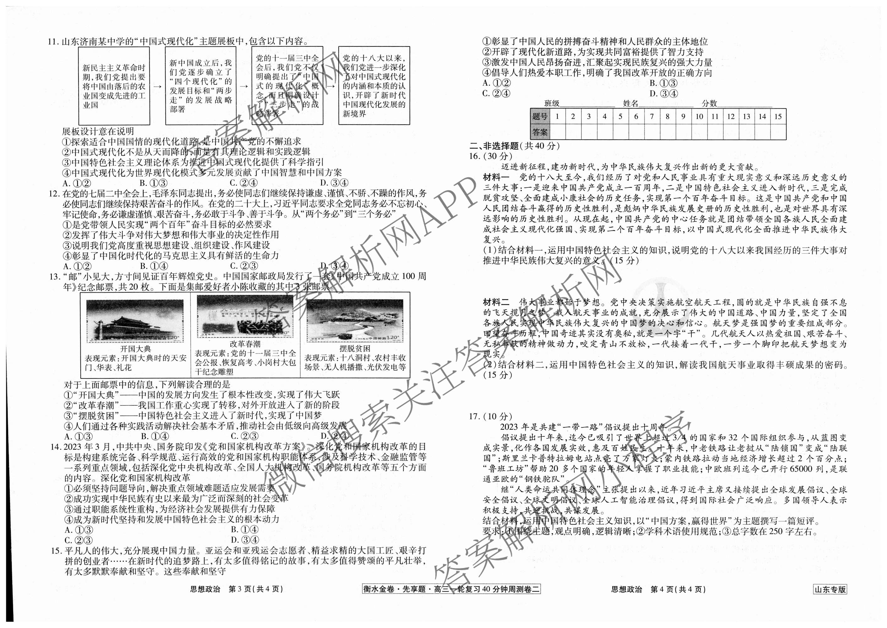 - (高三)2024~2025衡水金卷先享题·一轮复习40分钟周测卷·政治(山东专版)(二)2答案