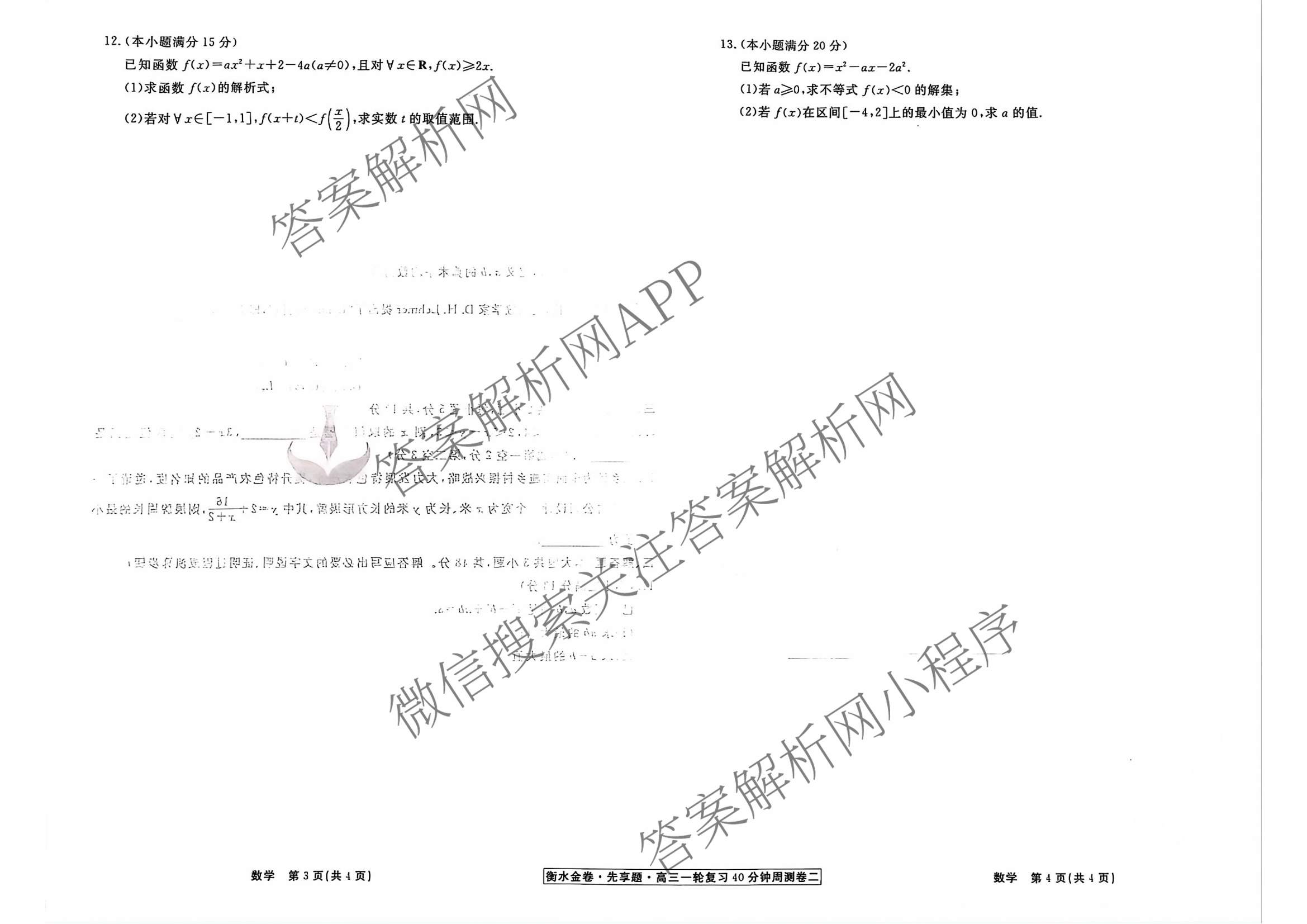 - 2024-2025[高三](衡水金卷先享题)·一轮复习40分钟周测卷·数学(G)(二)2试题