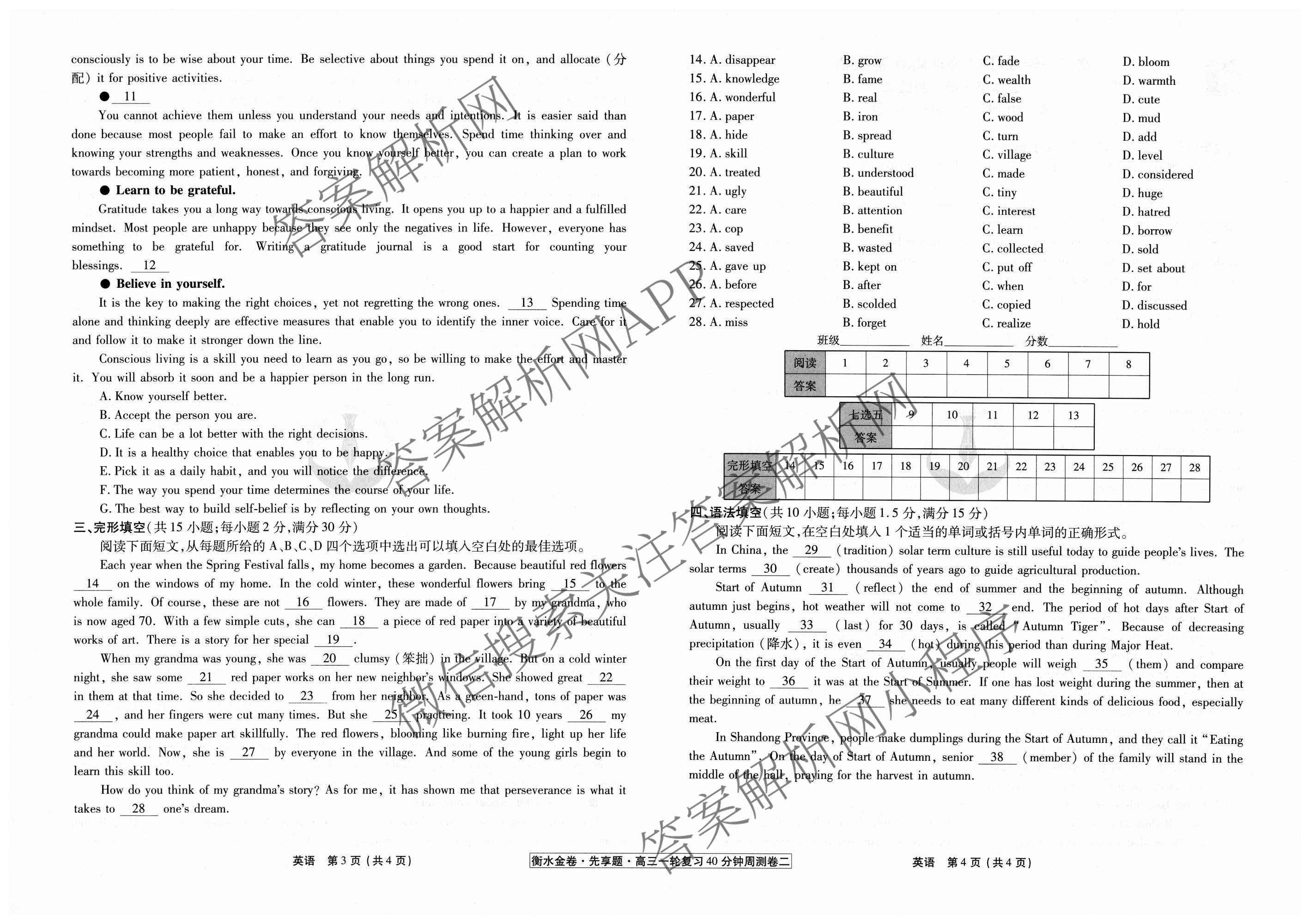 - 2024-2025(高三)(衡水金卷先享题)·一轮复习40分钟周测卷·英语(二)2试题