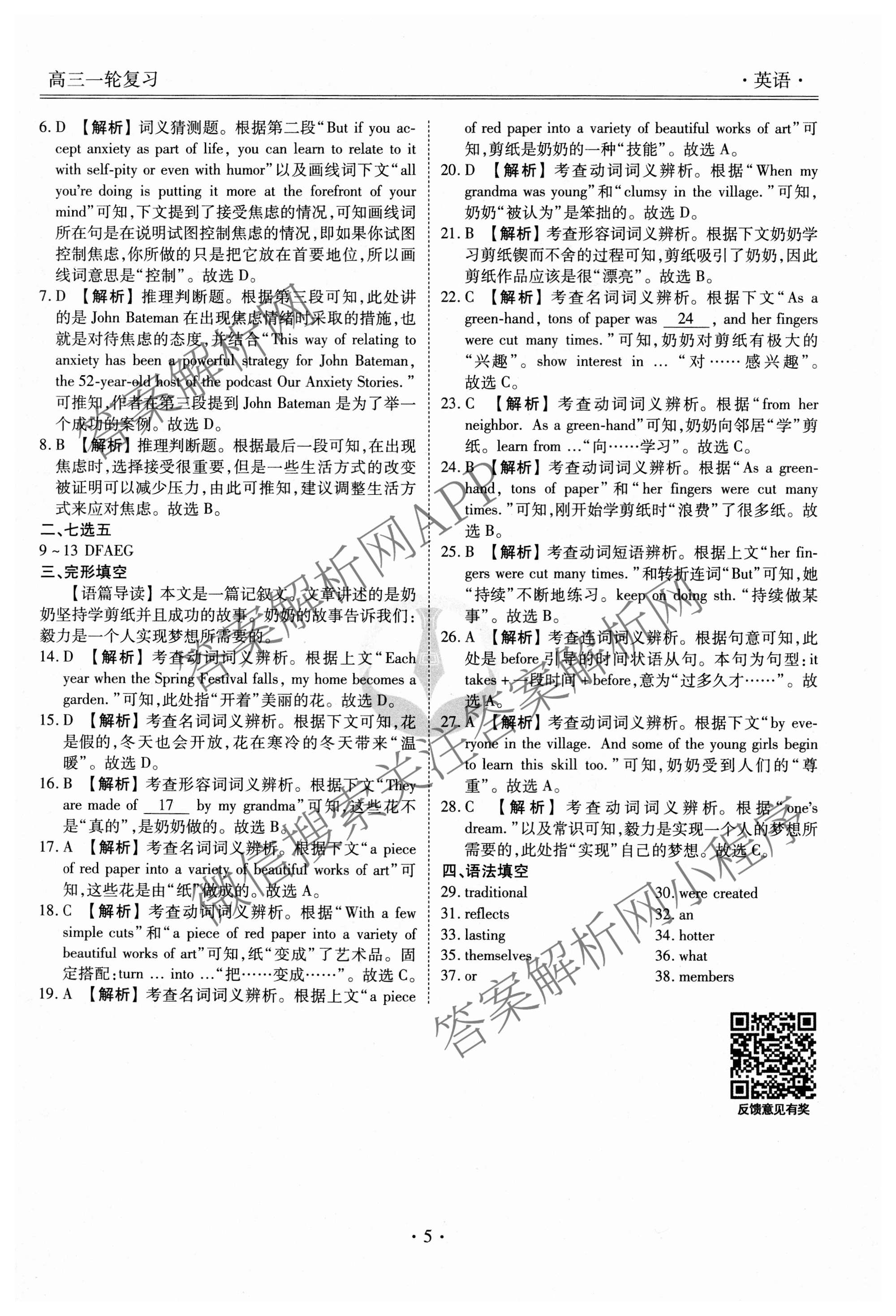 - 2024-2025(高三)(衡水金卷先享题)·一轮复习40分钟周测卷·英语(G)(二)2答案